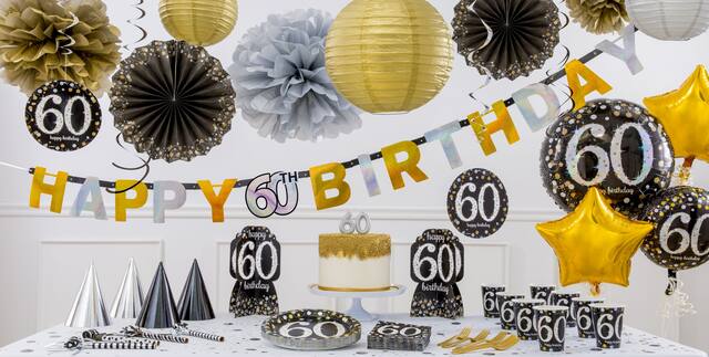 Sparkling Celebration Prismatic 60th Birthday Lunch Plates have an eye-catching 60 and border of gold and silver bubbles that feature a prismatic finish that really pops off the sleek black background