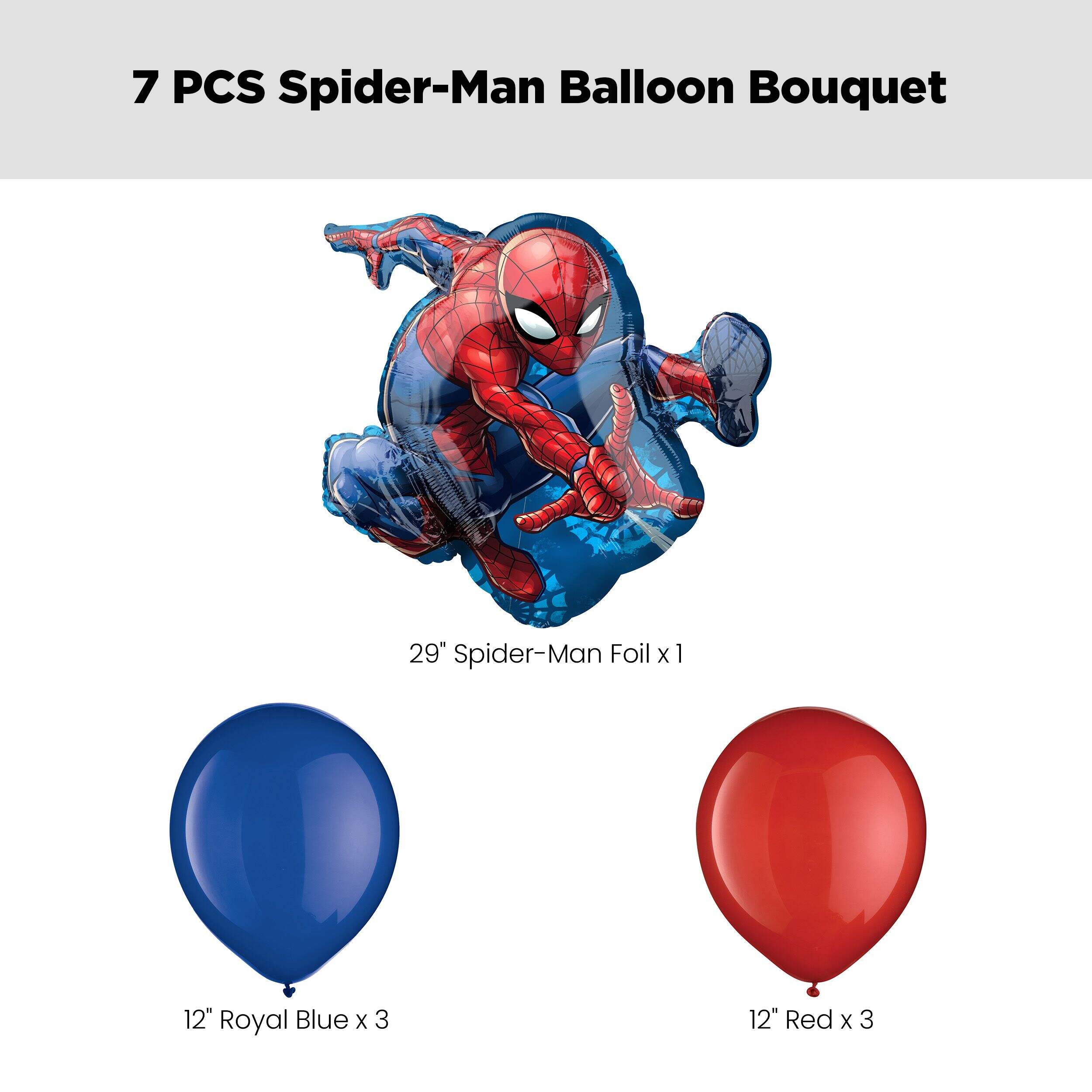 Put a giant smile on your little one's face with this Spider-Man 29" Supershape Balloon Bouquet with Royal Blue and Red 12" Latex Balloons