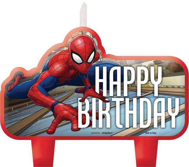 Largest candle features Spider-Man climbing a building and says "Happy Birthday"