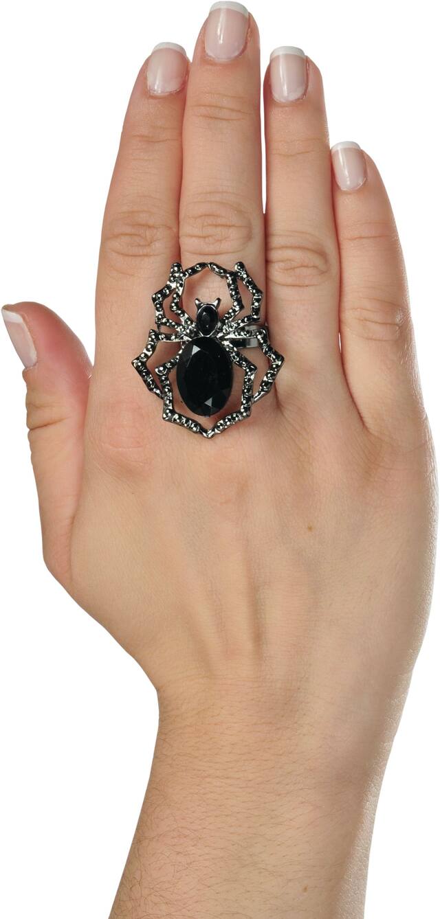 You may be interested in these similar products shown below.Spider Ring features a silver 8-legged spider with a black gem bodice on a silver ring