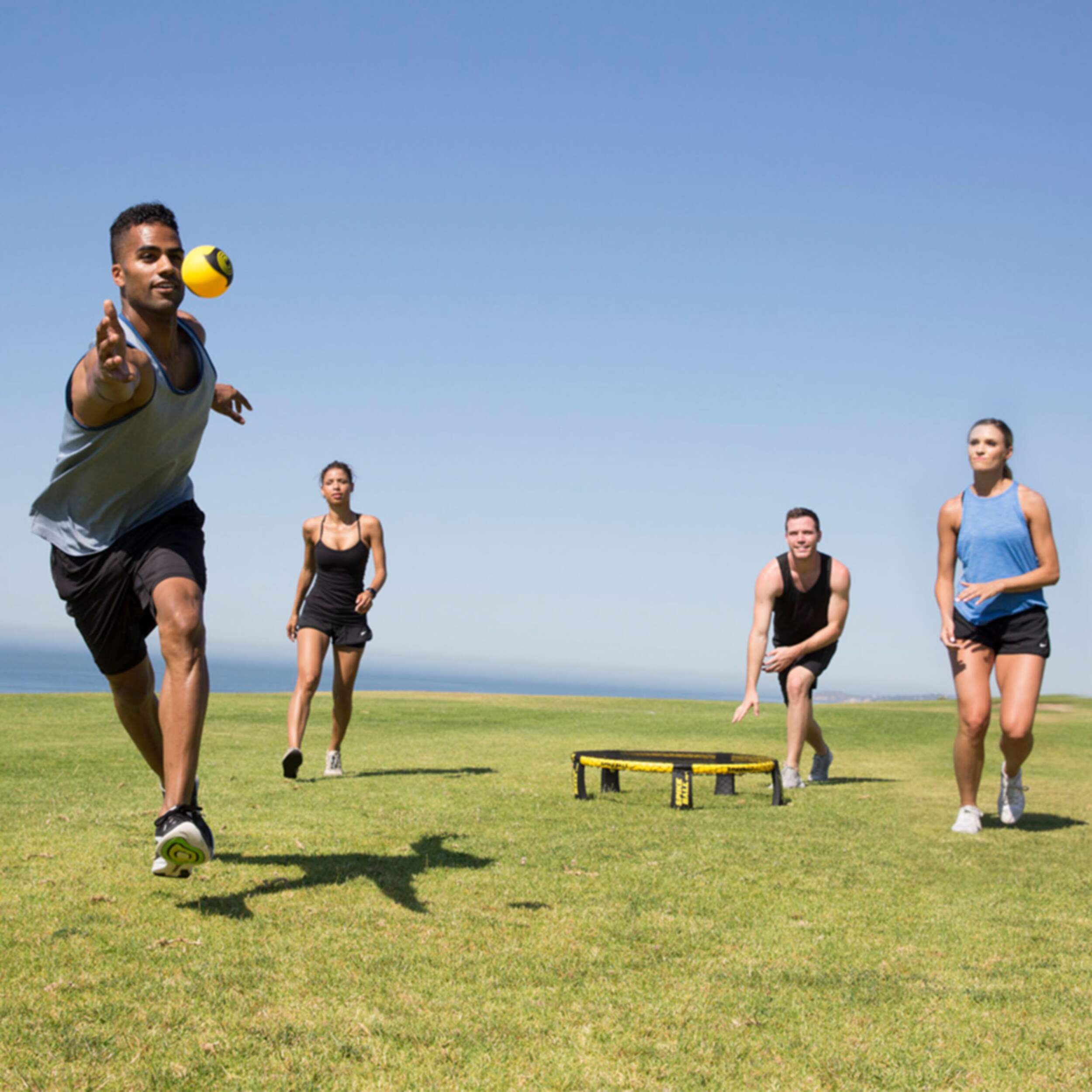 Find pick up games on the Spikeball App or check out SpikeballRoundnet.com for tournament details