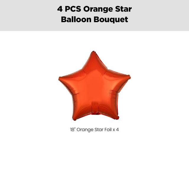 Brighten up any occasion with this Star Foil Balloon Bouquet in orange. Featuring a cluster of 18” star foil balloons, this 4-piece bouquet will complement any party theme.