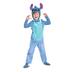 This costume features a blue jumpsuit with a lighter blue belly patch and a hood complete with Stitch's big ears and tuft of hair