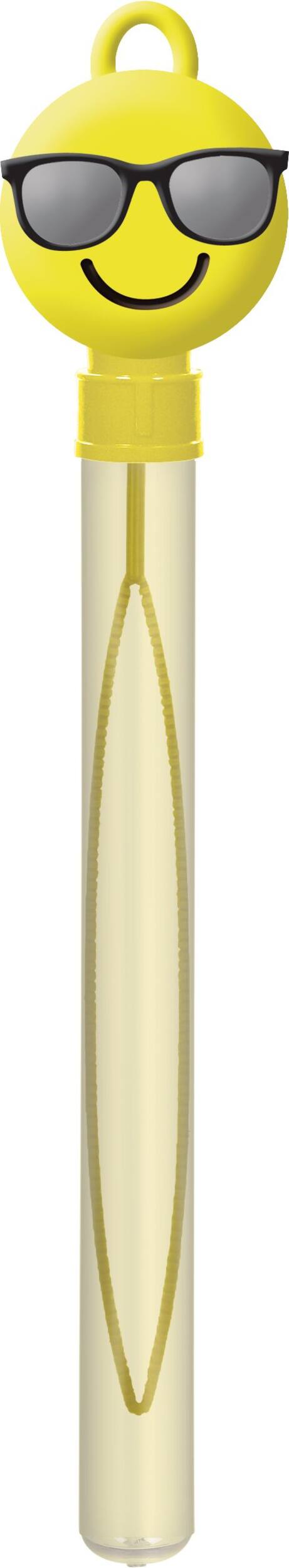 Features a long yellow bubble wand with a sunglasses emoji attachment on the top