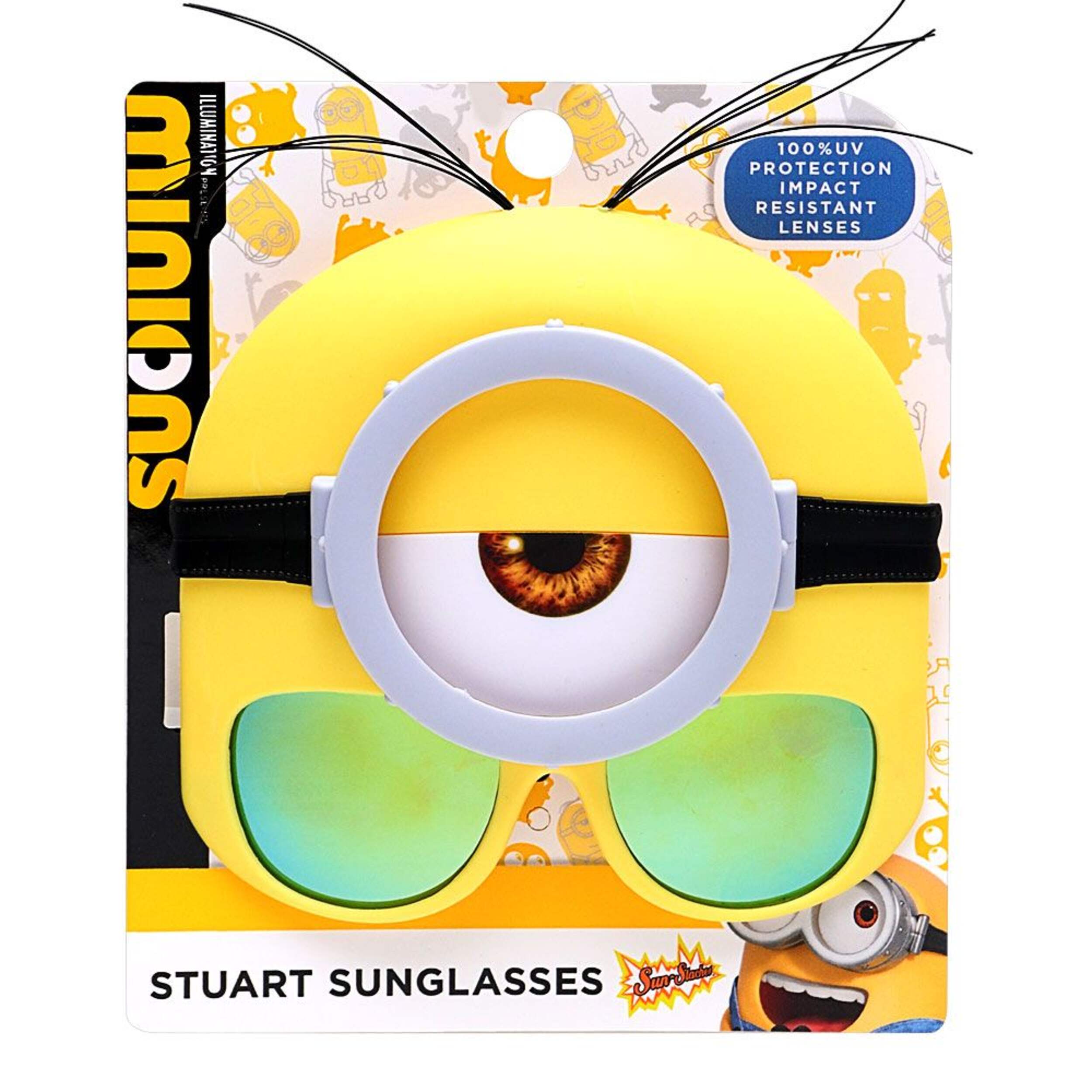 Stir up some trouble and chaos with a pair of Stuart the Minion Sun-Staches. From the beloved Despicable Me franchise, you can now become everyone's favourite food-obsessed, video game-loving minion. Featuring Stuart's combed hair and sleepy eye, these fun frames are perfect for your little troublemaker or when you're feeling extra mischievous.