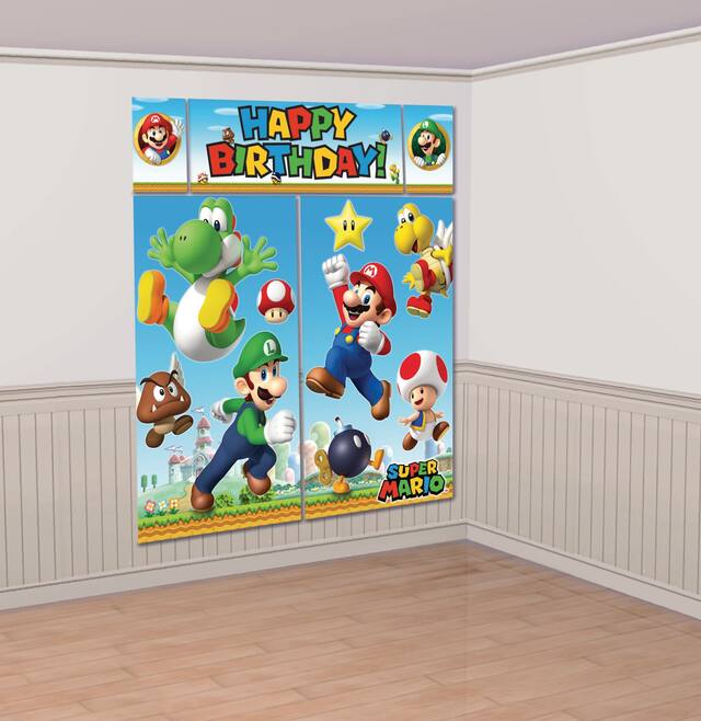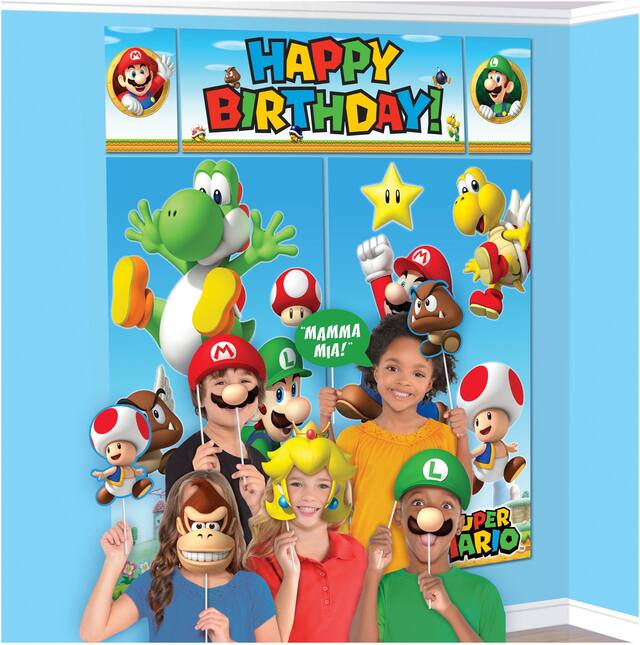 Includes posters printed with Super Mario characters and 12 photo props