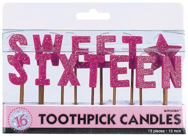 You may be interested in these similar products shown below.Top your birthday cake or cupcakes with these cute Sweet 16 Sparkle Mini Pick Candles