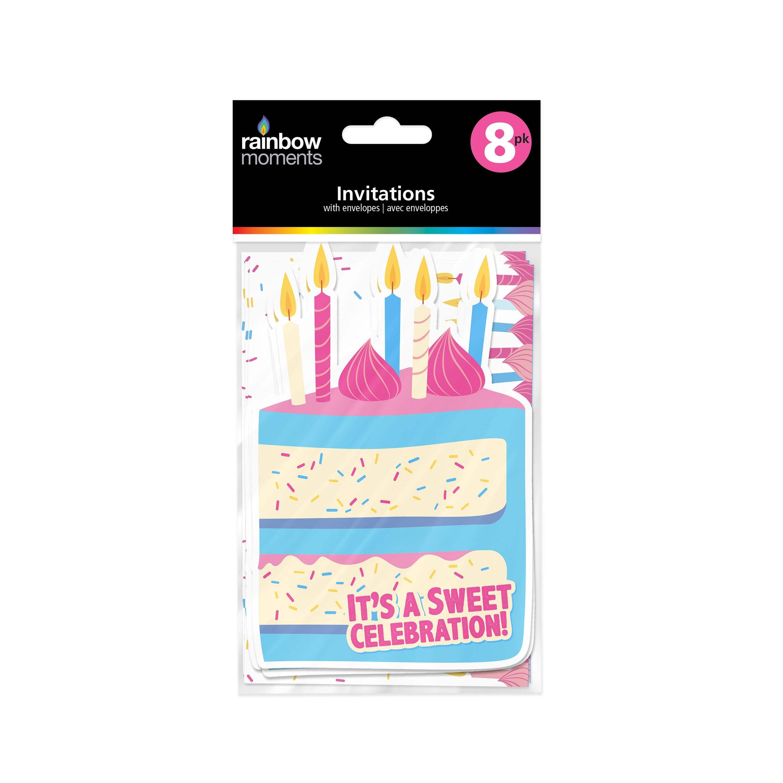 Invite friends and family to your next birthday party with these delightful Sweet Celebration Birthday Invitations. Featuring a cake shape, these birthday party invites are adorned with multicoloured confetti and a cheerful 'It's a Sweet Celebration' message in pink. Perfect for setting the tone for a fun and festive birthday celebration.