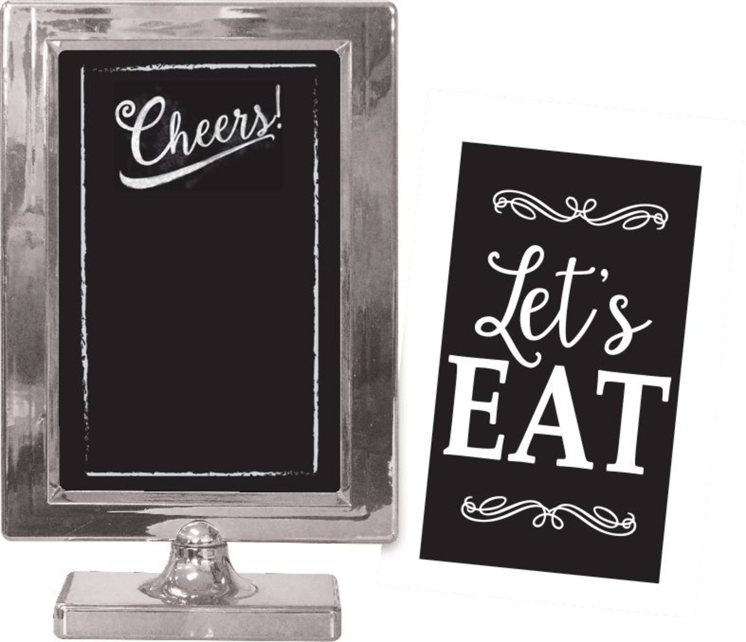 • The frame comes with "Let's Eat" and "Cheers" inserts, which can be customized with chalk or markers (not included)