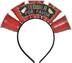 • Black plastic headband is topped with five red plastic party cups and a sign that reads "Tequila Por Favor"