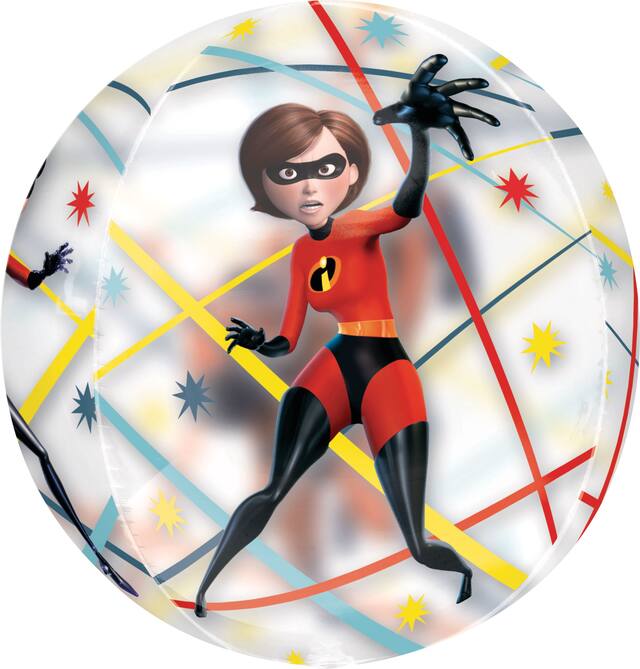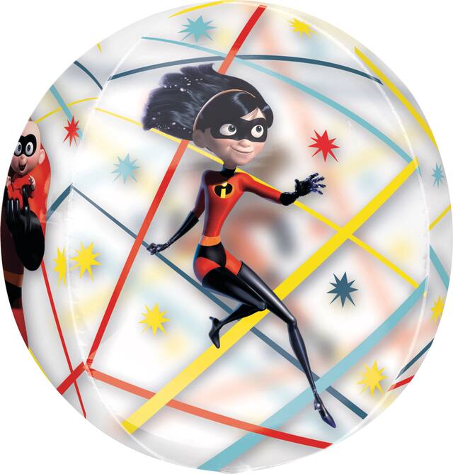 Features a clear plastic sphere balloon with Mr. Incredible, Elastigirl and other characters from the movie, to add some decorative flair to your child's birthday party