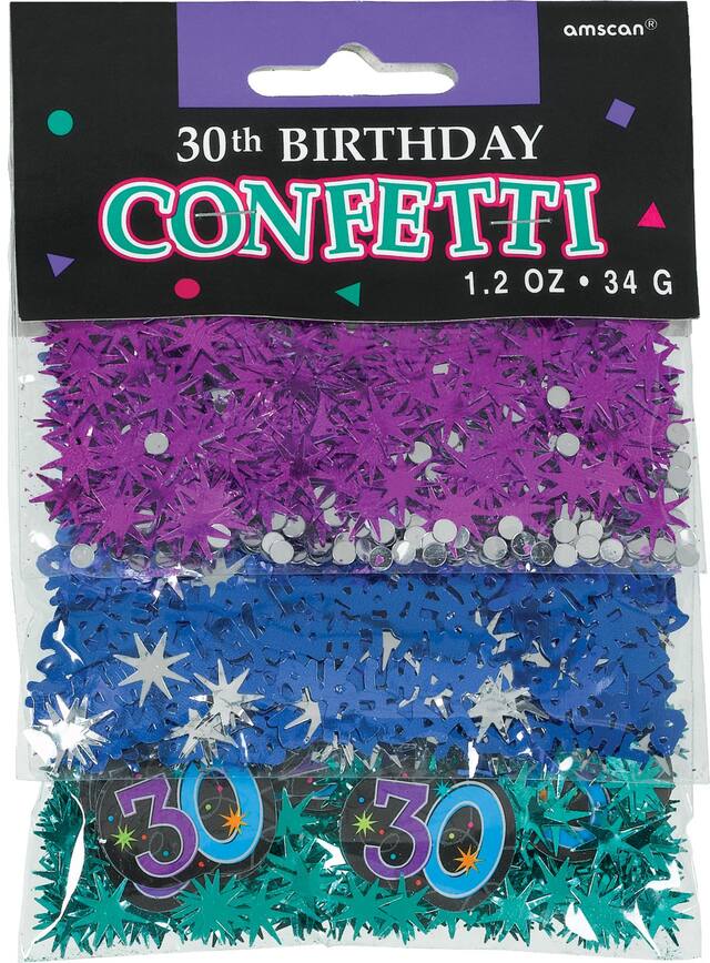 • The Party Continues 30th Birthday Confetti comes in three flashy designs to add sparkle to the party table and favour bags