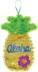 • Gold and green pineapple is adorned with an "Aloha" headline and pink hibiscus flower