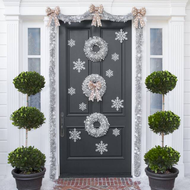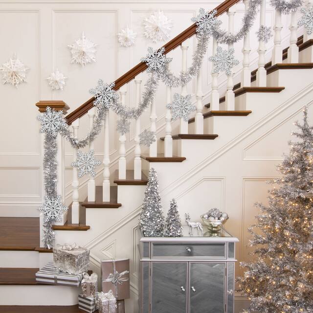 You may be interested in these similar products shown below.Decorate for the holidays with this Tinsel Snowflake. It features a lightweight frame covered in white tinsel and sets a festive seasonal tone for your very own winter wonderland