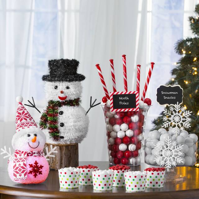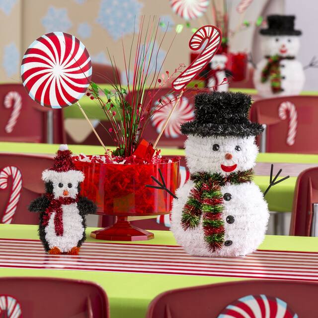You may be interested in these similar products shown below.Tinsel Snowman features a classic white body, a red and green scarf and black top hat