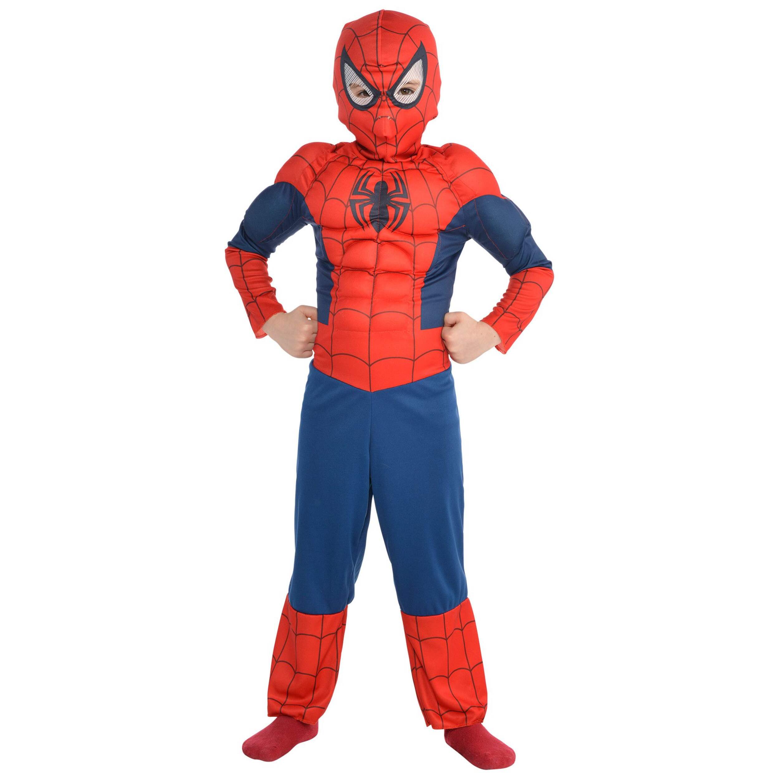 Let your child swing into action with the Toddler & Kids' Disney Marvel Spider-Man Peter Parker Halloween Costume. This 100% polyester jumpsuit features muscles molded into the arms, legs, and torso for an authentic superhero look. With Spider-Man's iconic red and blue colours, they'll feel ready to set off on a trick-or-treating adventure. The breathable hooded mask with mesh eye holes ensures comfort while your young ones play hero.