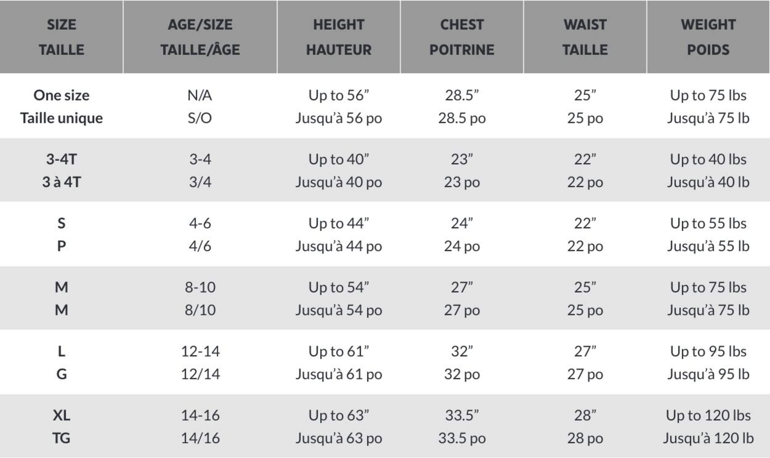 Small (Age 4-6), Medium (Age 6-10), Large (Age 10-14), Extra Large (Age 14-16), One Size (Age 8-12)