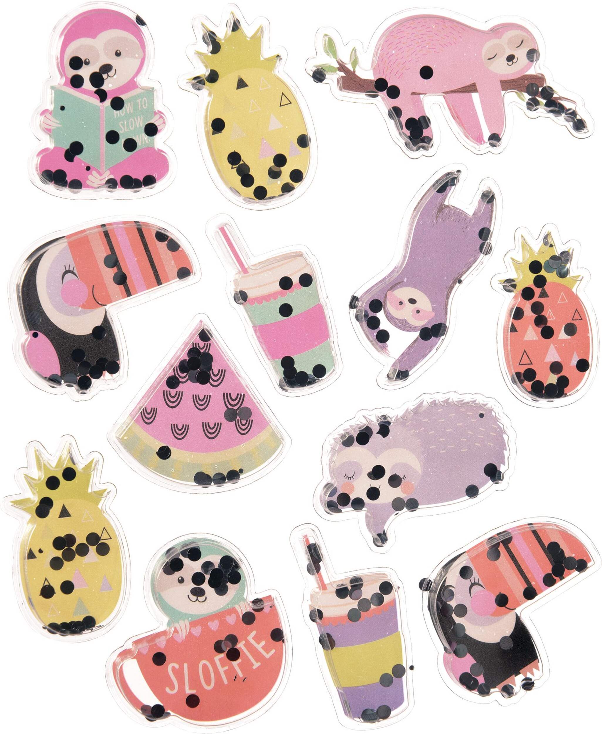 • Topical Tree Sloth Confetti Shake Stickers let kids make adorable decorations