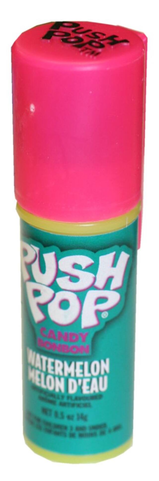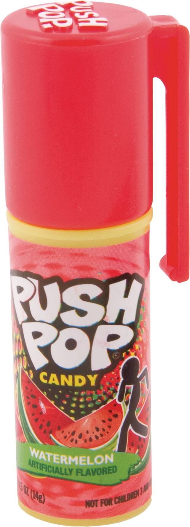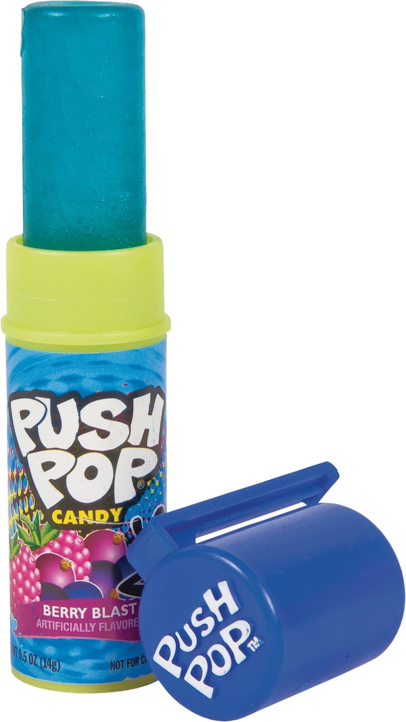 Topps Push Pop includes cherry, grape, strawberry, blue raspberry, watermelon, and strawberry