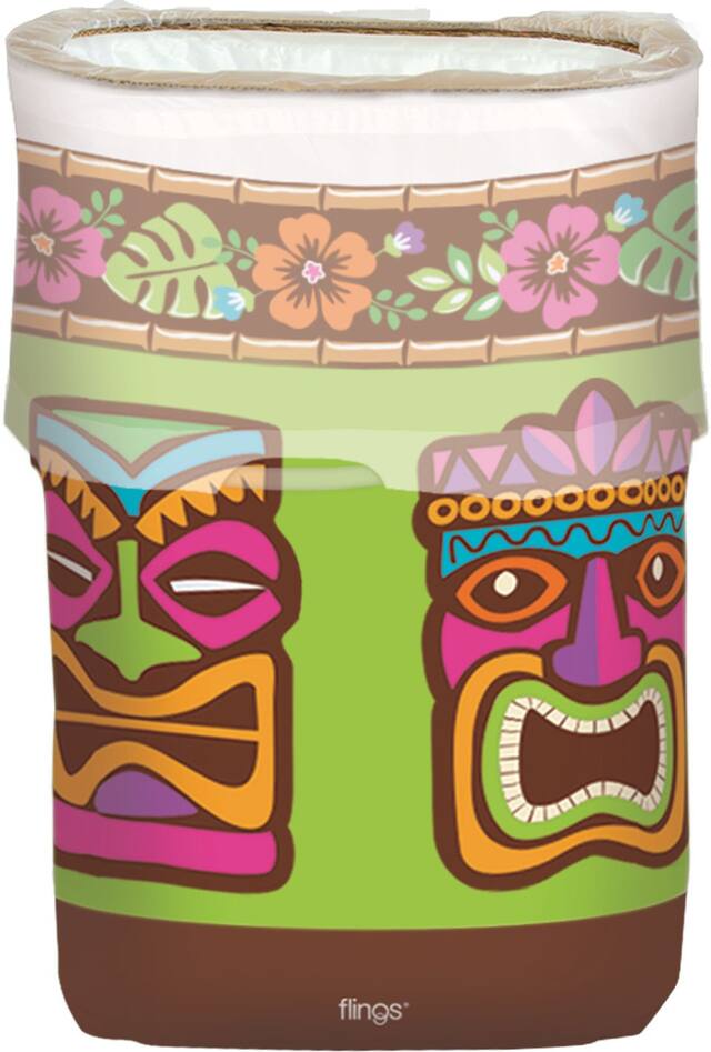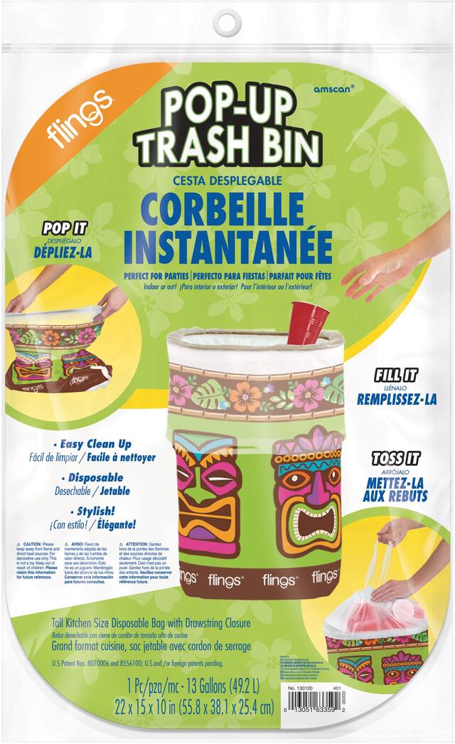 You may be interested in these similar products shown below.Tropical Tiki Pop-Up Trash Bin features a vibrant print of tiki masks and hibiscus flowers to match your luau pool party or summer barbecue