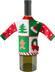 Bottle sleeve is made of soft felt and shaped like an ugly Christmas sweater with panels of a Christmas tree, Santa hat, gingerbread man, and wreath