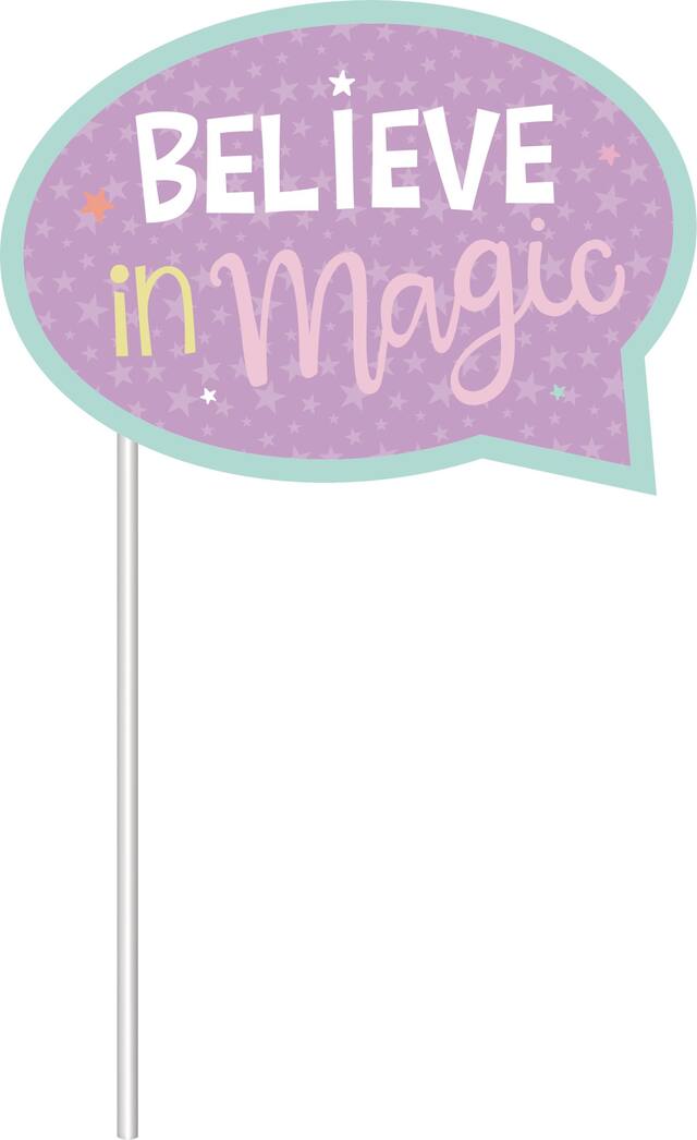 Props featured include crowns, unicorn, ears, and headlines such as "Believe In Magic" and "Let's Party"