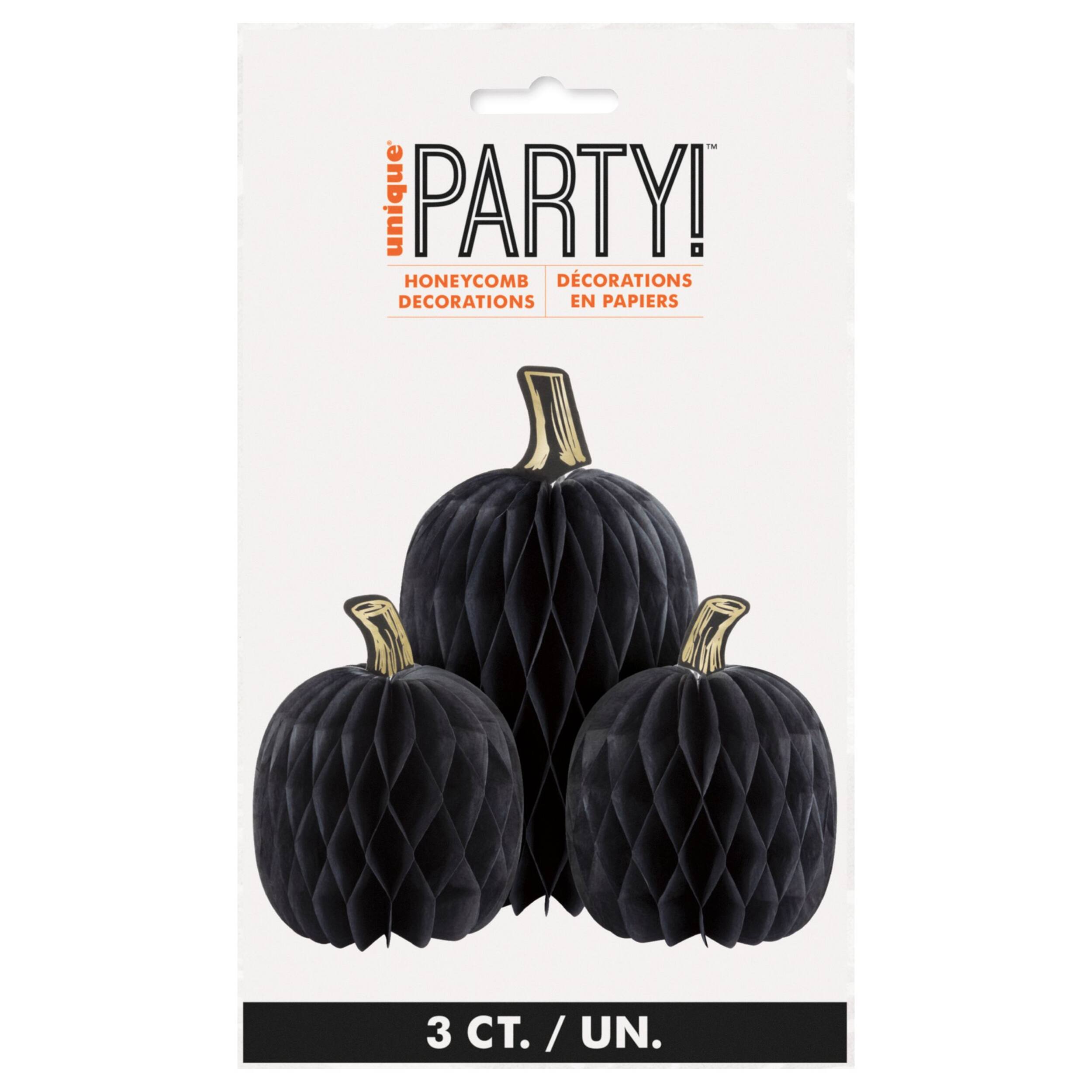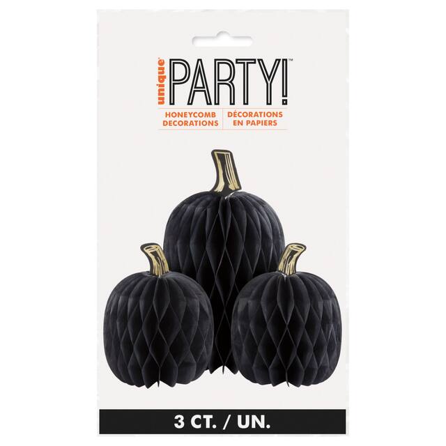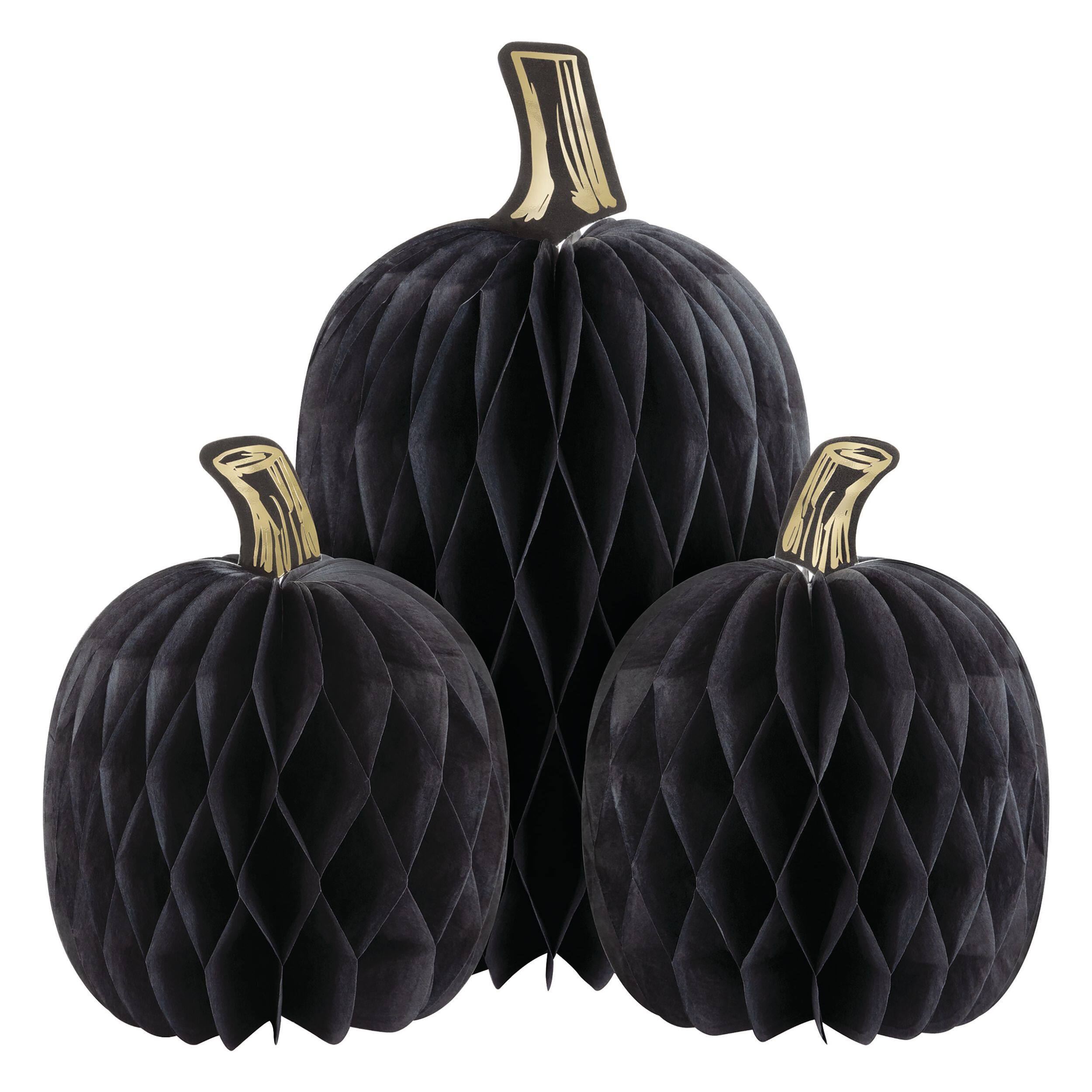 Add a festive touch to your Halloween decor with this set of three pumpkin honeycomb centerpieces. These charming decorations feature foil accents and a unique honeycomb design, making them a standout addition to any Halloween party or display. Easy to assemble, they bring a spooky yet stylish vibe to your seasonal celebrations.