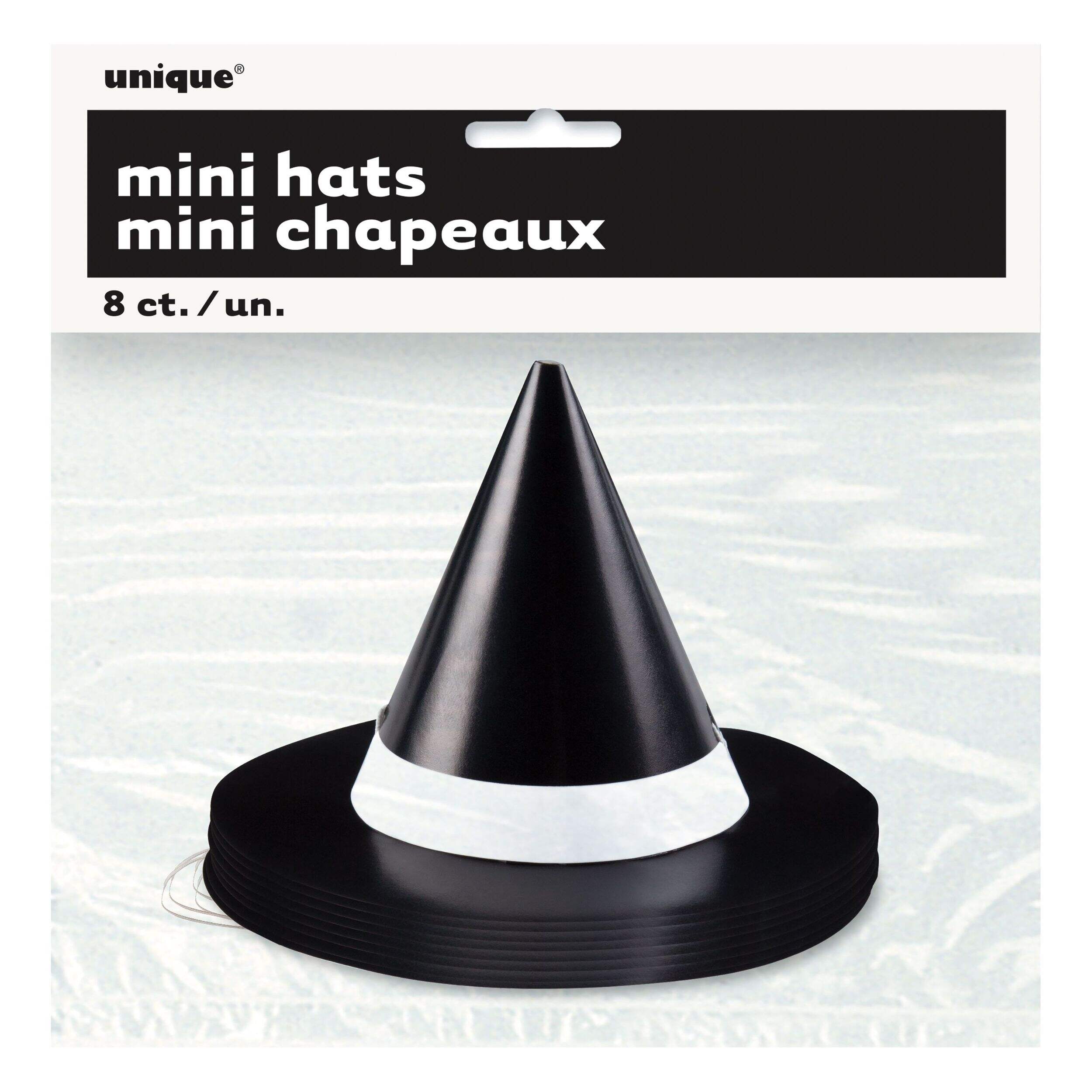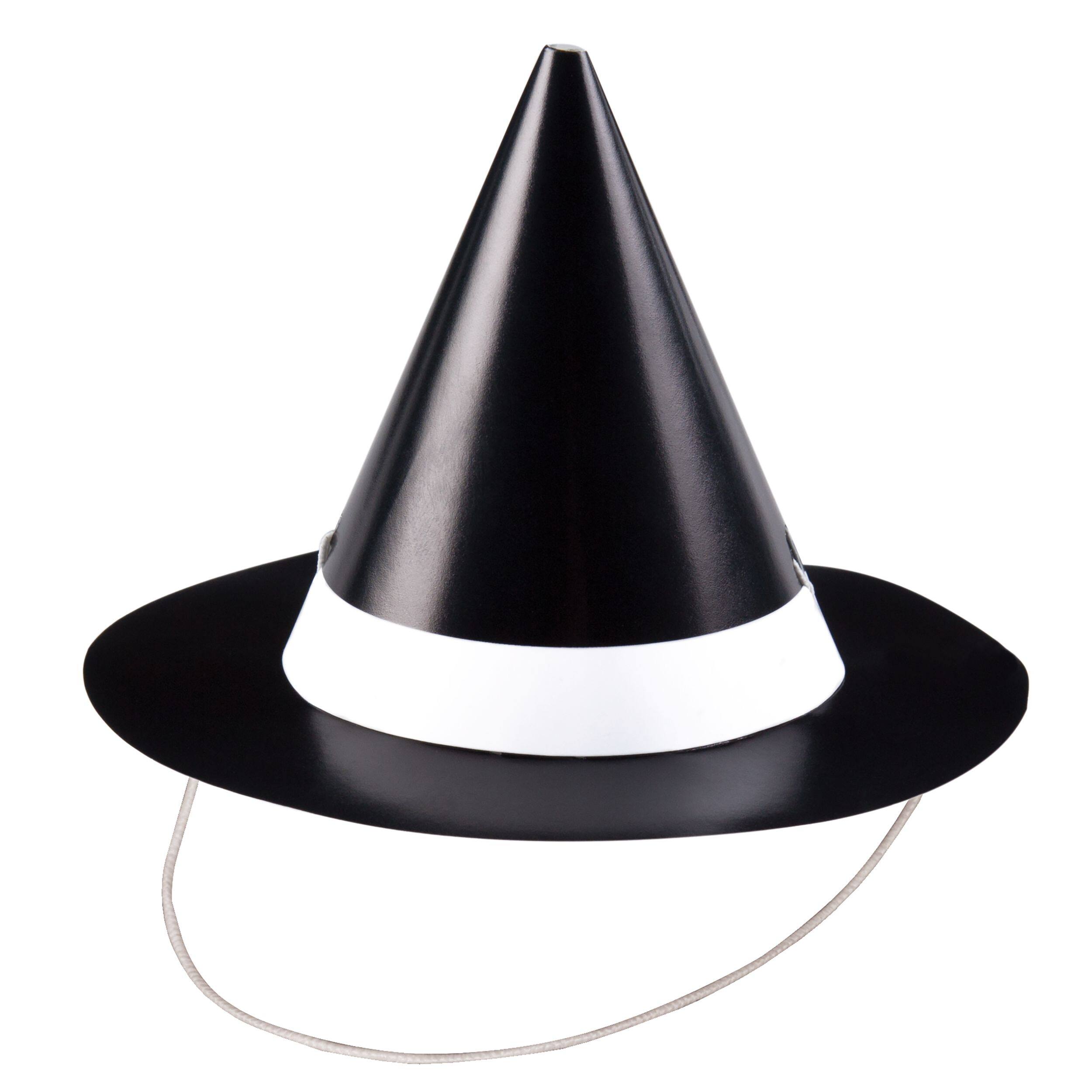 Each witch hat is black in colour with a white band, giving it a realistic look