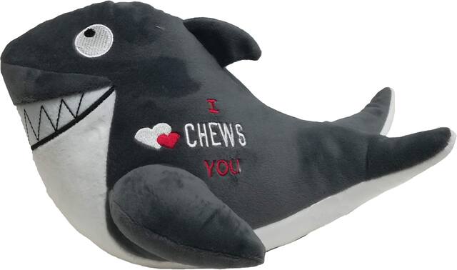 You may be interested in these similar products shown below.Valentine's Day Shark Plush resembles a smiling grey shark with the headline "I Chews You" embroidered on the side
