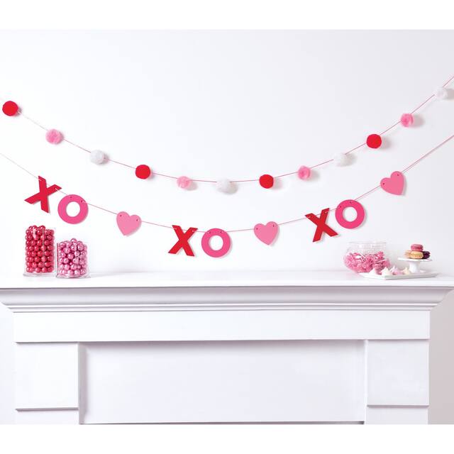 • One MDF banner reads "X's" and "O's" with pink hearts and the other banner has red, white and pink circles