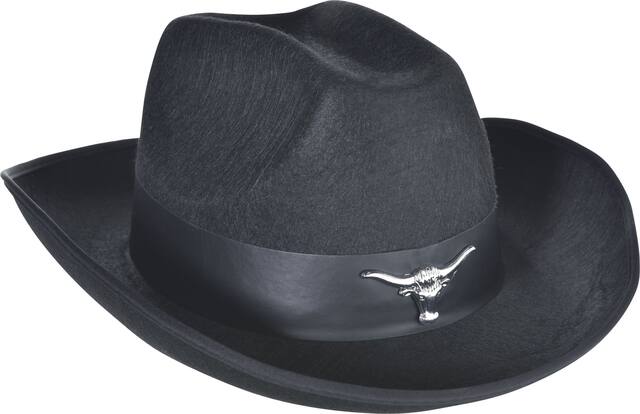 You may be interested in these similar products shown below.This Adult Black Cowboy Hat is a stylish accessory that exudes a Western charm. Crafted with high-quality black felt, this hat features a sleek tonal band around its base and a silver-tone bull's head adornment at the front. Whether you're attending a Halloween event, a Western-themed party, or planning a cowboy movie marathon night, this hat is the perfect addition to your ensemble. Prepare to embrace the spirit of the Wild West with a resounding "Yee-Haw!"