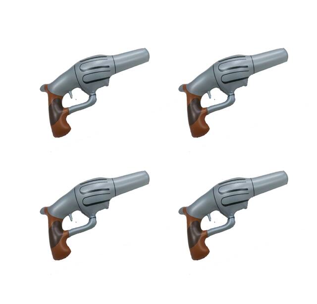 Set includes four inflatable pistols