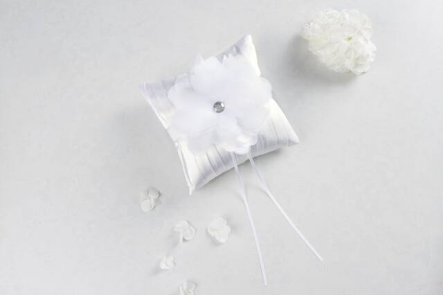 You may be interested in these similar products shown below.White Flower Ring Bearer Pillow comes with a tulle 3-D flower and a rhinestone at the centre