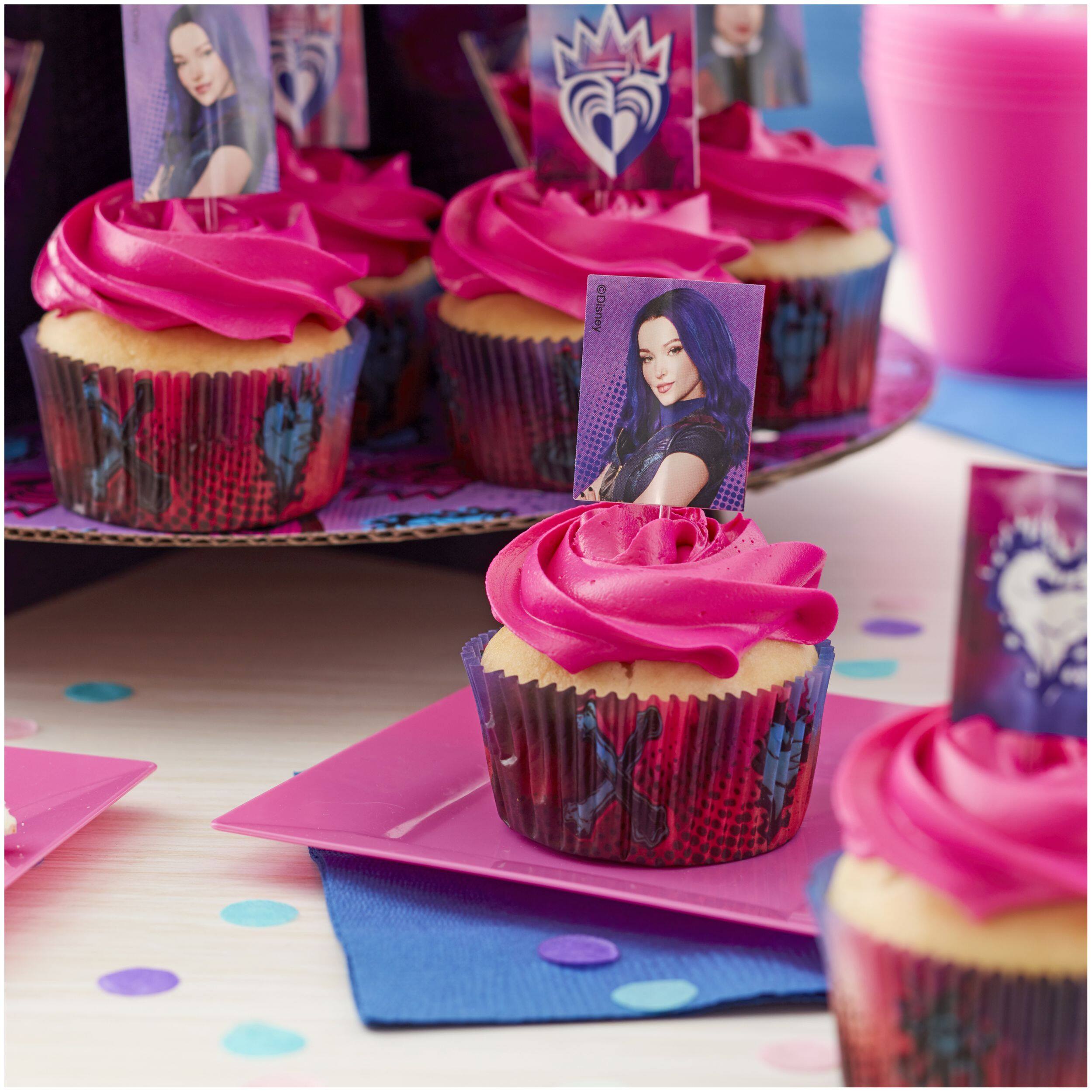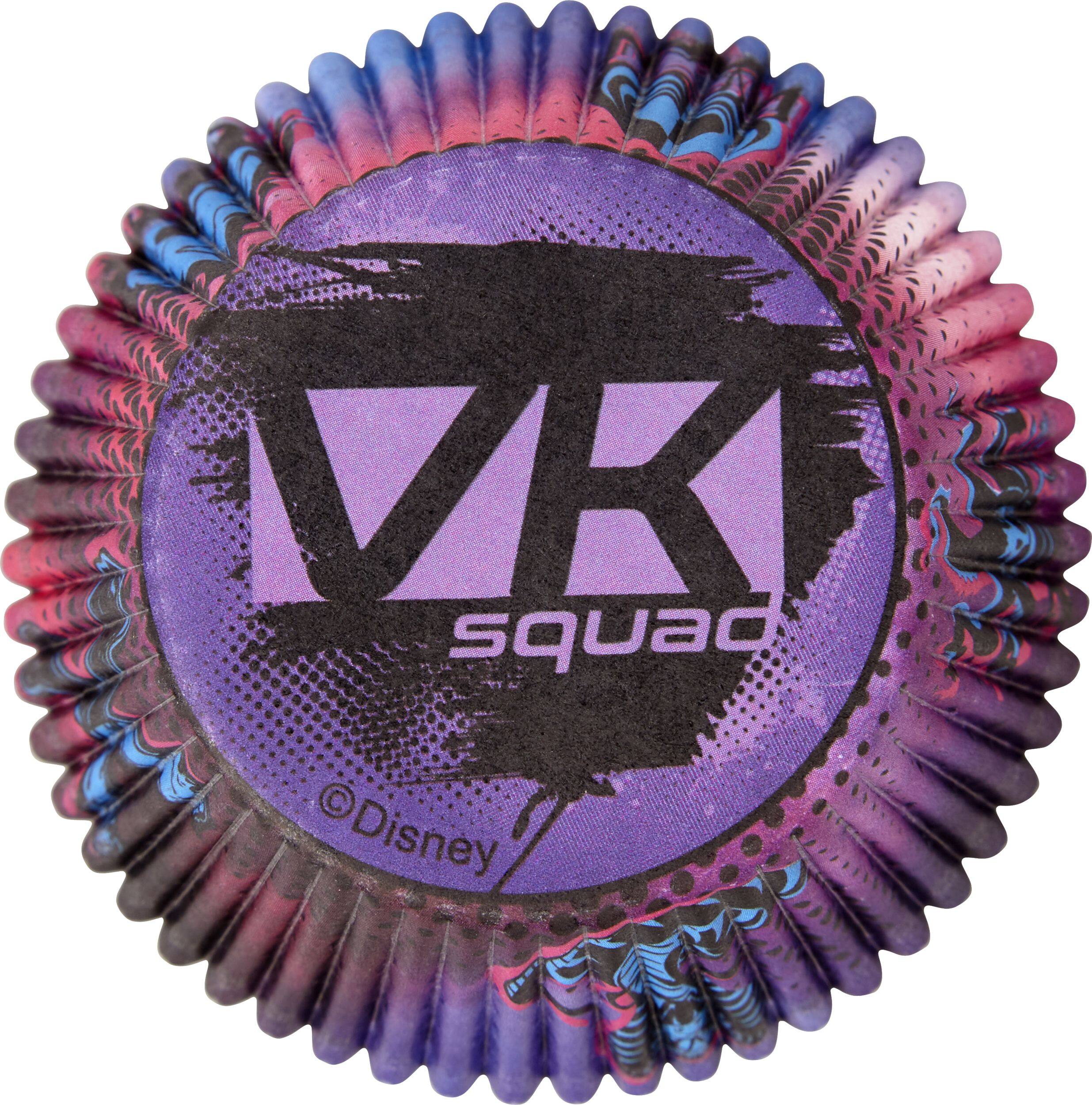 • Wilton Descendants 3 Baking Cups feature Mal, Evie, Jay, Uma and Carlos's icons on the sides, along with the Villain Kids logo on bottom