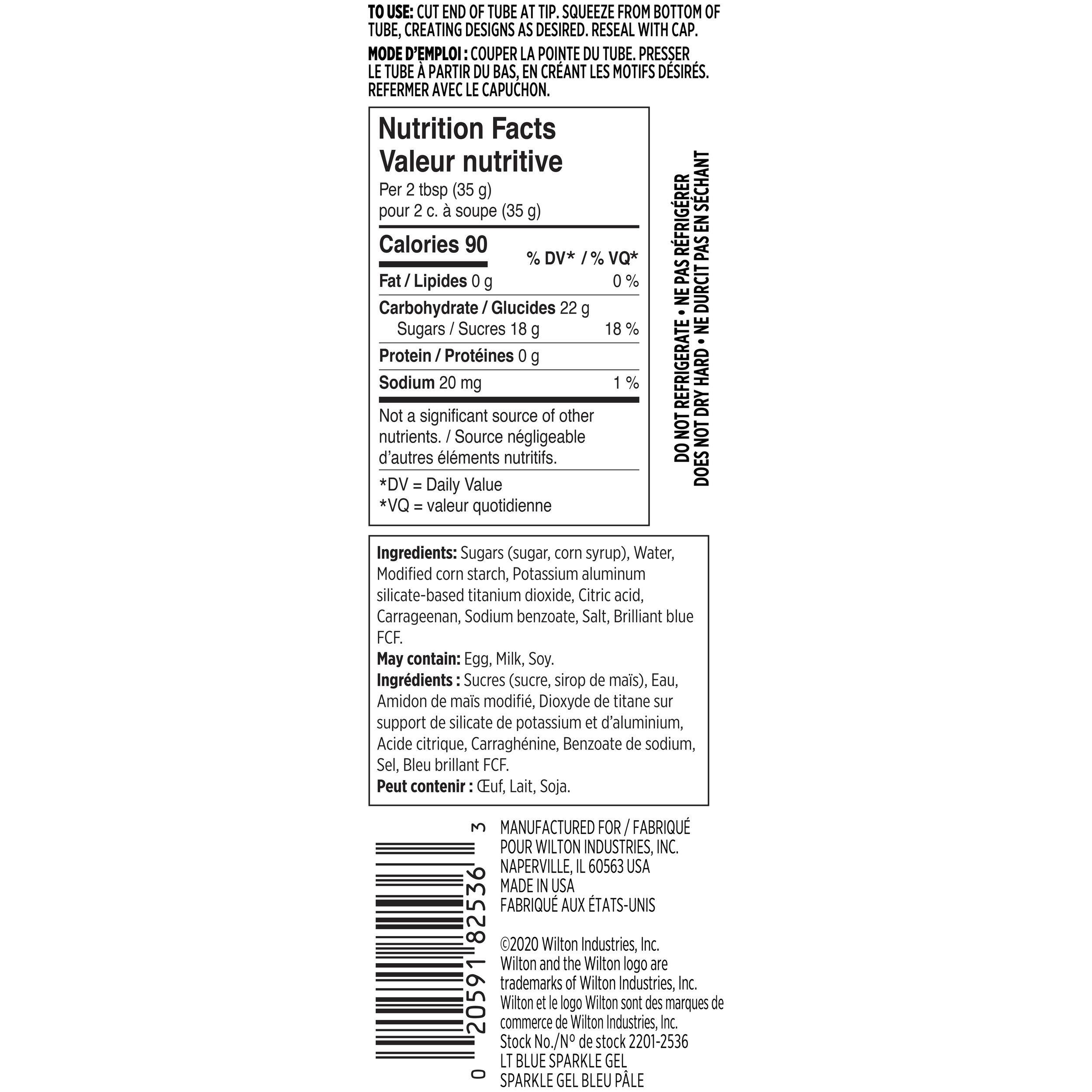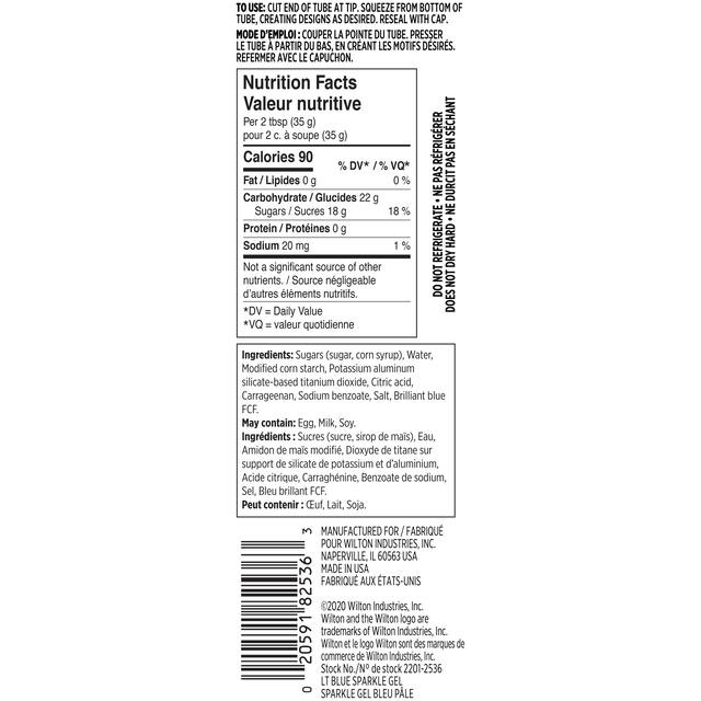 You may be interested in these similar products shown below.Wilton Light Blue Sparkle Gel let you write sparkly messages and create cool accents with this fun, non-drying decorating gel