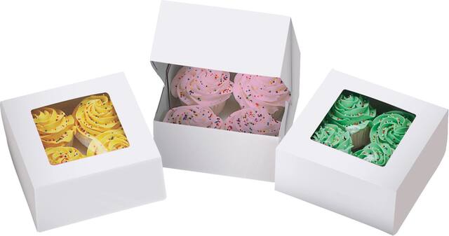 Wilton 4-Cavity Cupcake Boxes come with inserts that hold 4 standard cupcakes each