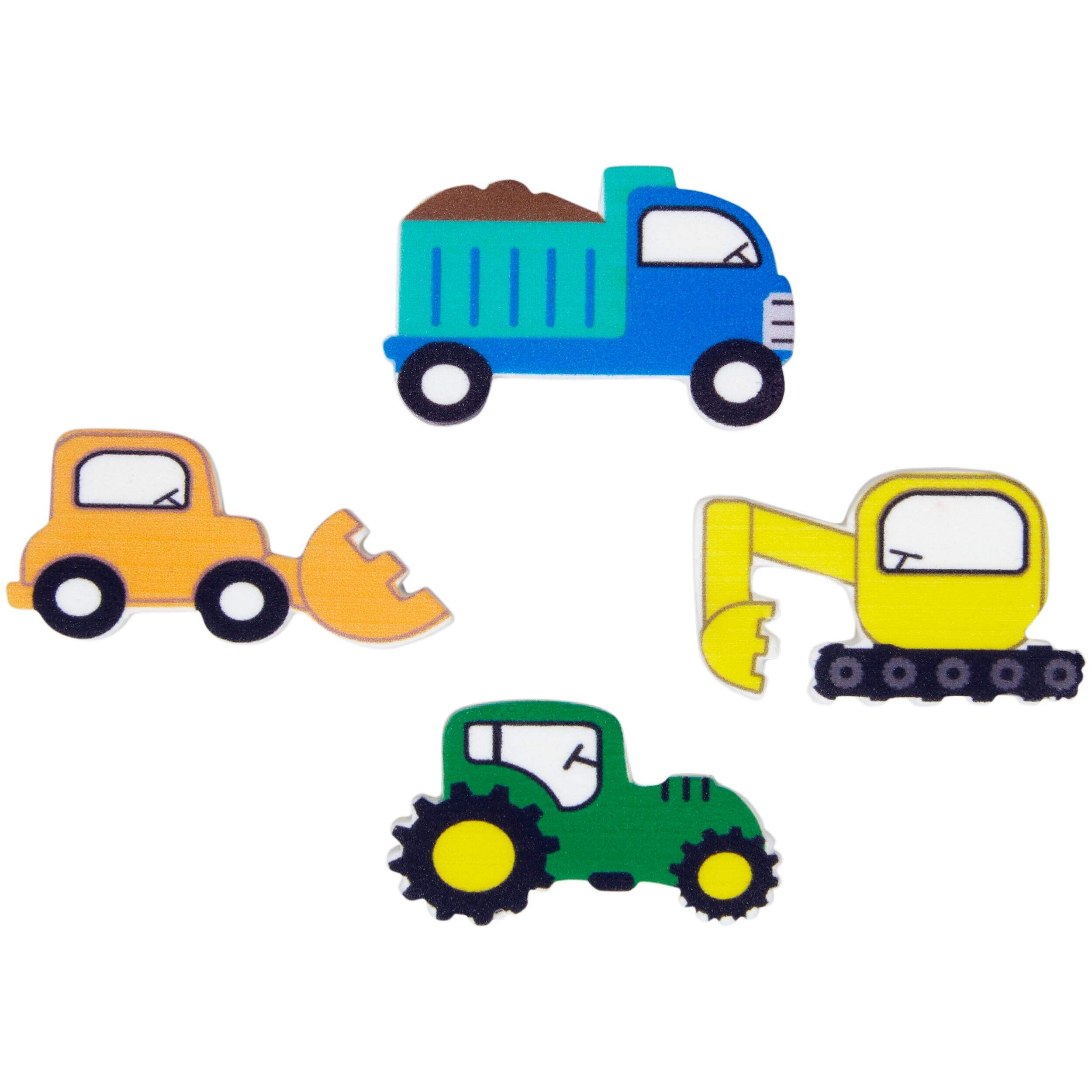 Includes 3 dump truck, 3 bulldozer, 3 tractor, and 3 digging truck decorations