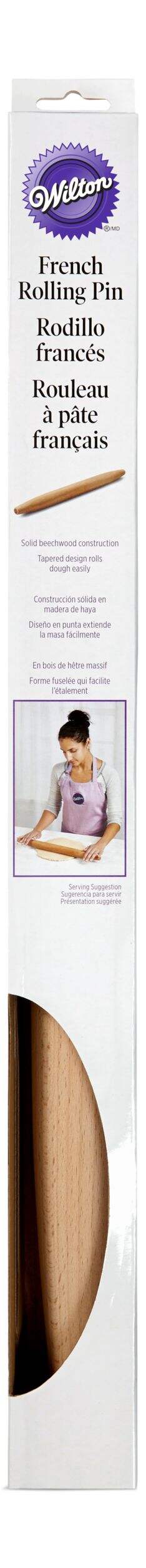 Roll out cookie dough, pie dough and more with this Wilton Beechwood Traditional Tapered French Rolling Pin. Designed with tapered ends that allow you to easily pivot when rolling out dough or pastry crust, this rolling pin is essential for creating a uniform, round shape. Try it with roll-out sugar cookie dough, pizza dough, pie crust dough and more! Measuring 20.9 in. long, this rolling pin is great for projects big and small. Simply use the palms of your hands to roll the rolling pin while pressing down on the dough. Constructed of solid beechwood, this French-style rolling pin is sure to become your new favorite kitchen tool!