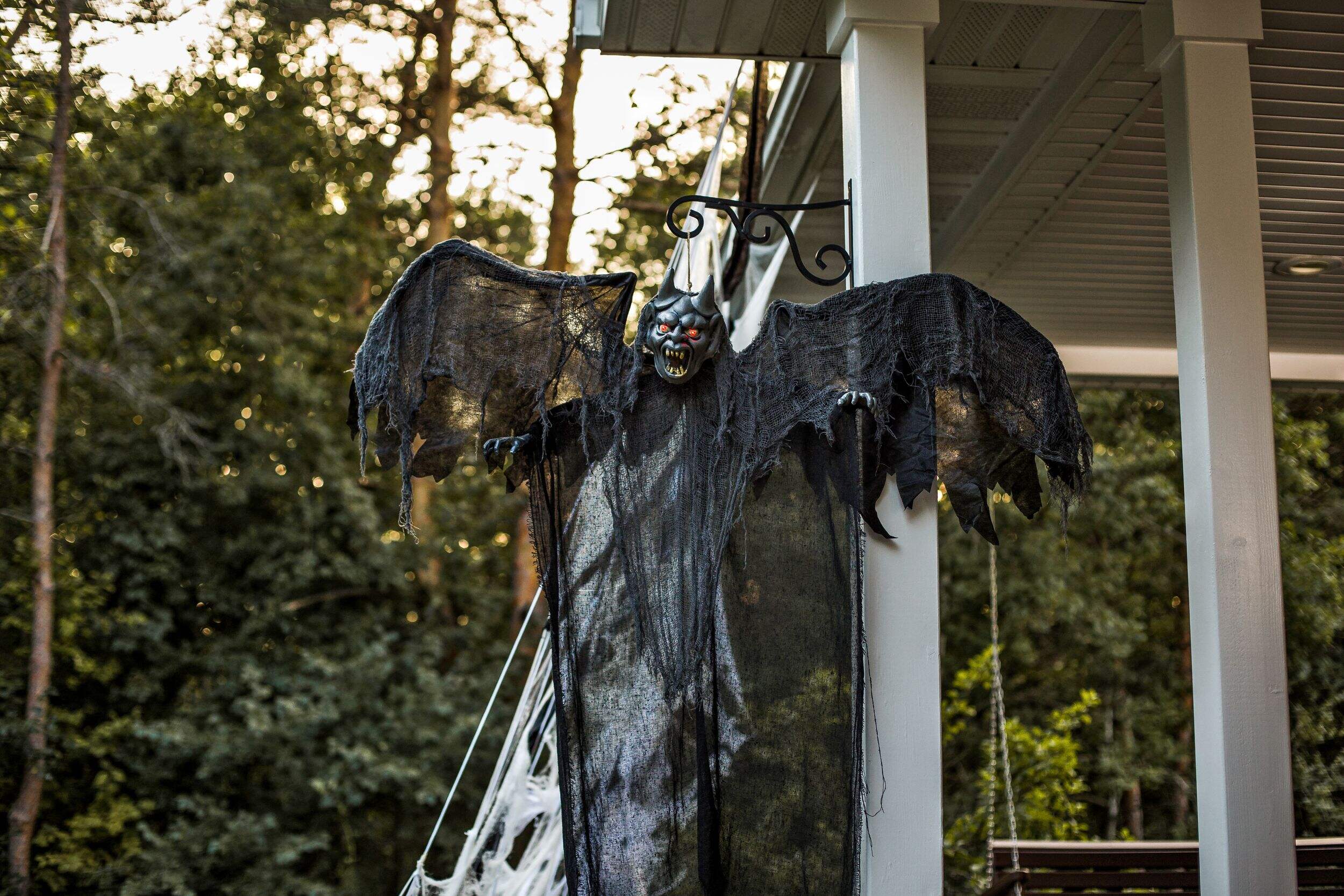 Light-Up Grey Winged Gargoyle Decoration has death towering over trick-or-treaters on Halloween night