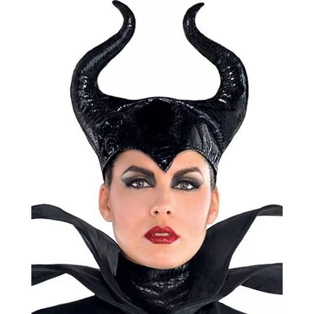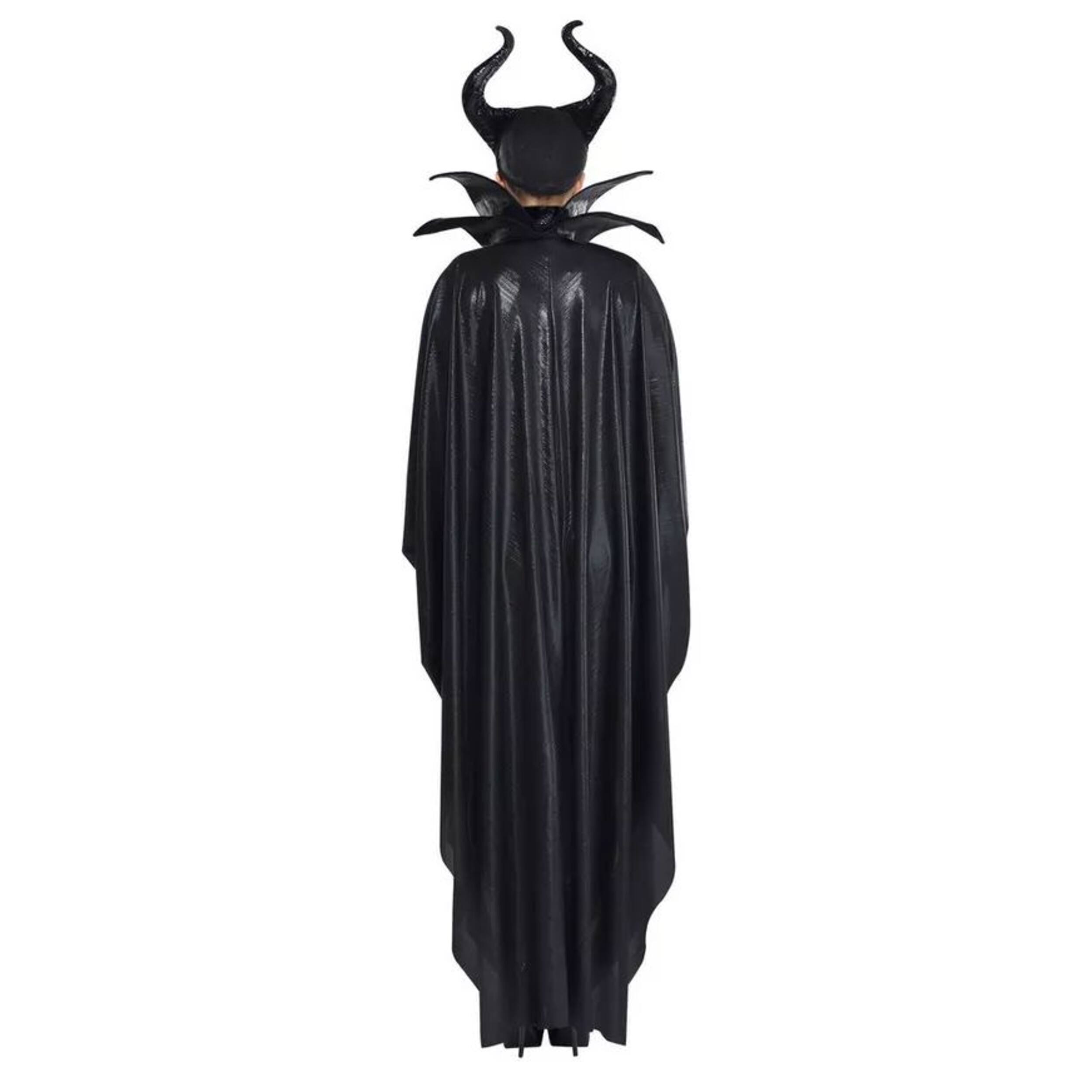 • The Maleficent Halloween Costume, Adult, Plus Size is a high-quality three-piece costume that features the classic horned headpiece