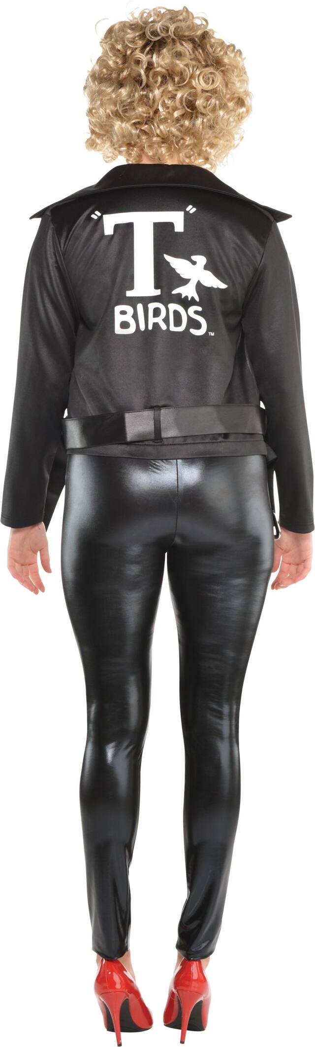 You may be interested in these similar products shown below.Grease Women's Greaser Sandy Costume features a black catsuit and a jacket with an attached belt