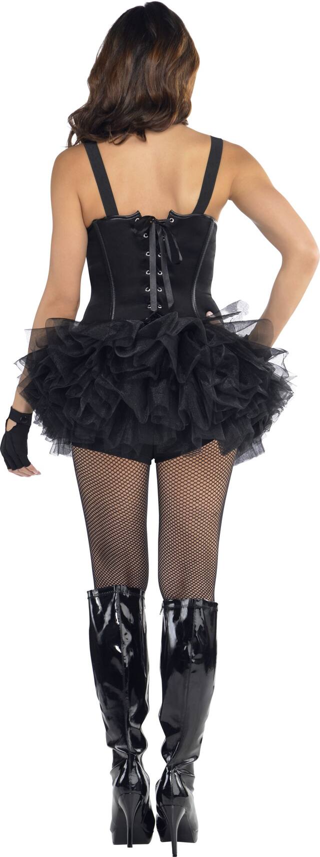 Includes corset top, tutu, boy shorts, and fingerless gloves