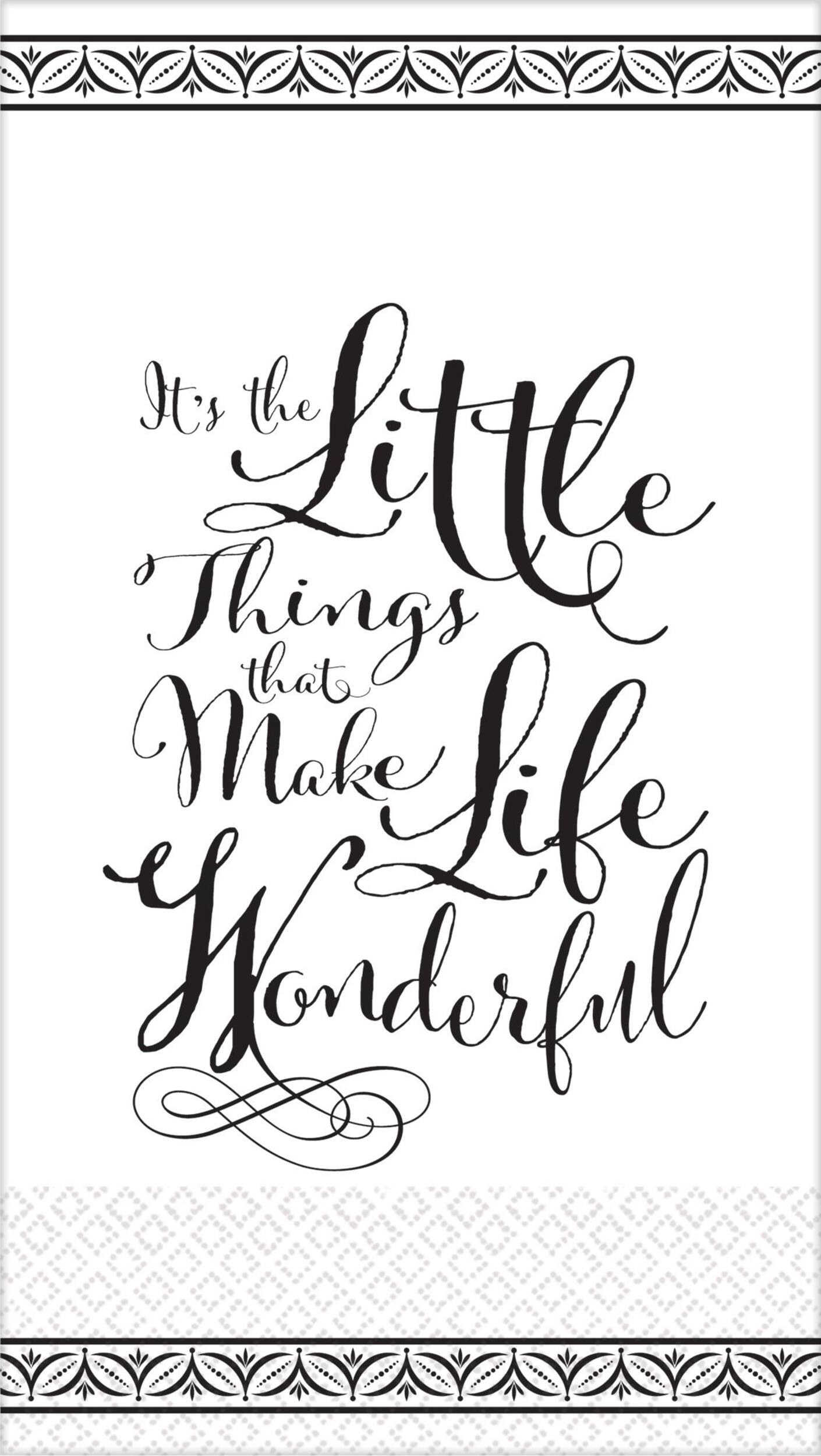 You may be interested in these similar products shown below.Wonderful Life Premium Guest Towels feature an art nouveau border in black and comes with a "It's the little things that make life wonderful" message