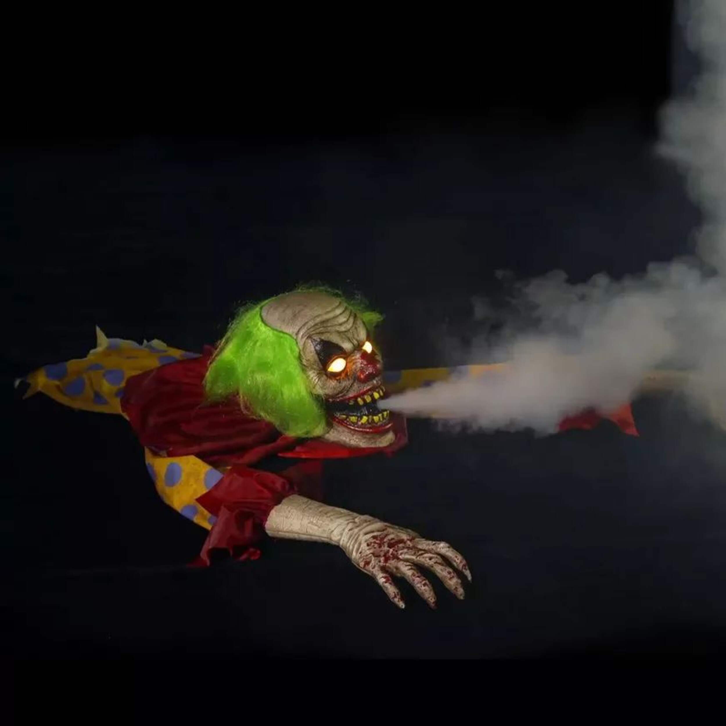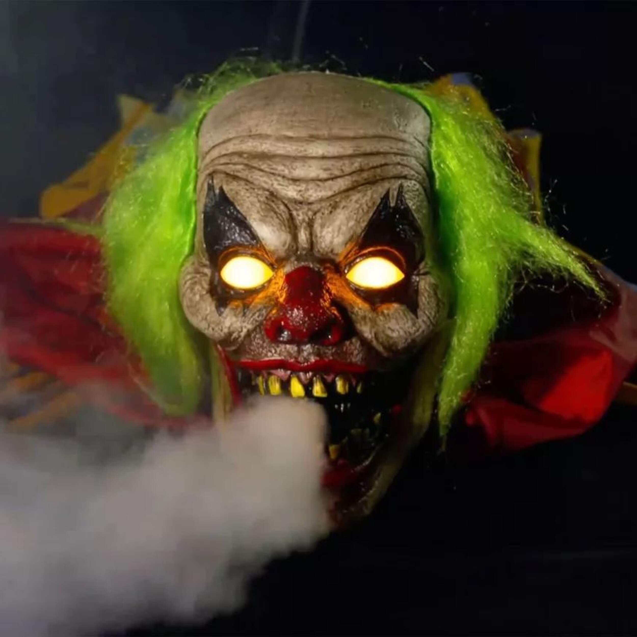 Elevate the spook-o-meter at your Halloween party with the Amscan Light Up Zombie Clown with Fog Adapter