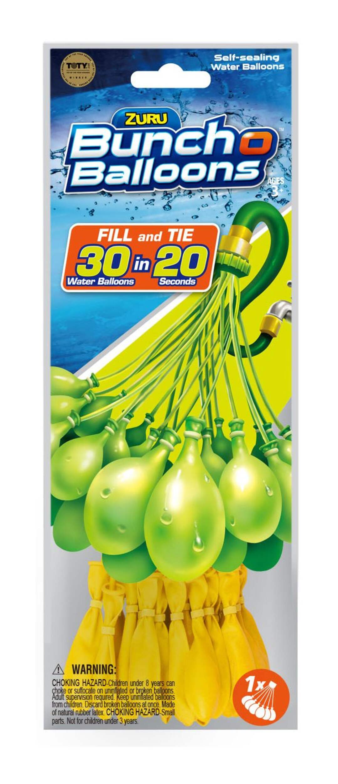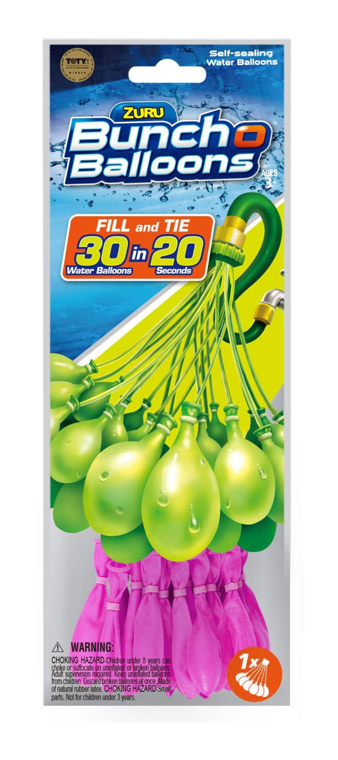 You may be interested in these similar products shown below.ZURU's Bunch O Balloons Fill & Tie Self-Sealing Water Balloons provide unlimited outdoor fun for kids aged 6 and above. Utilizing innovative O-Ring technology and rapid fill capabilities, you can prepare 100 water balloons in less than 60 seconds, without the stress and mess of manually tying each one. Each pack includes 30 water balloons and one bunch of balloons, facilitating hours of splash-filled fun. This product eliminates the need for hand-tying, letting the fun begin in no time. Savour the seamless experience of water play, with ZURU's Bunch O Balloons.