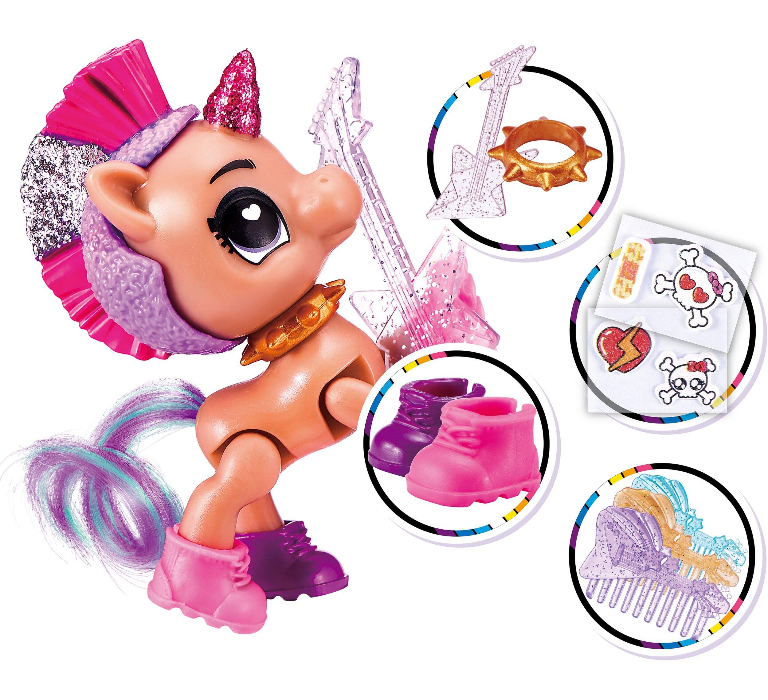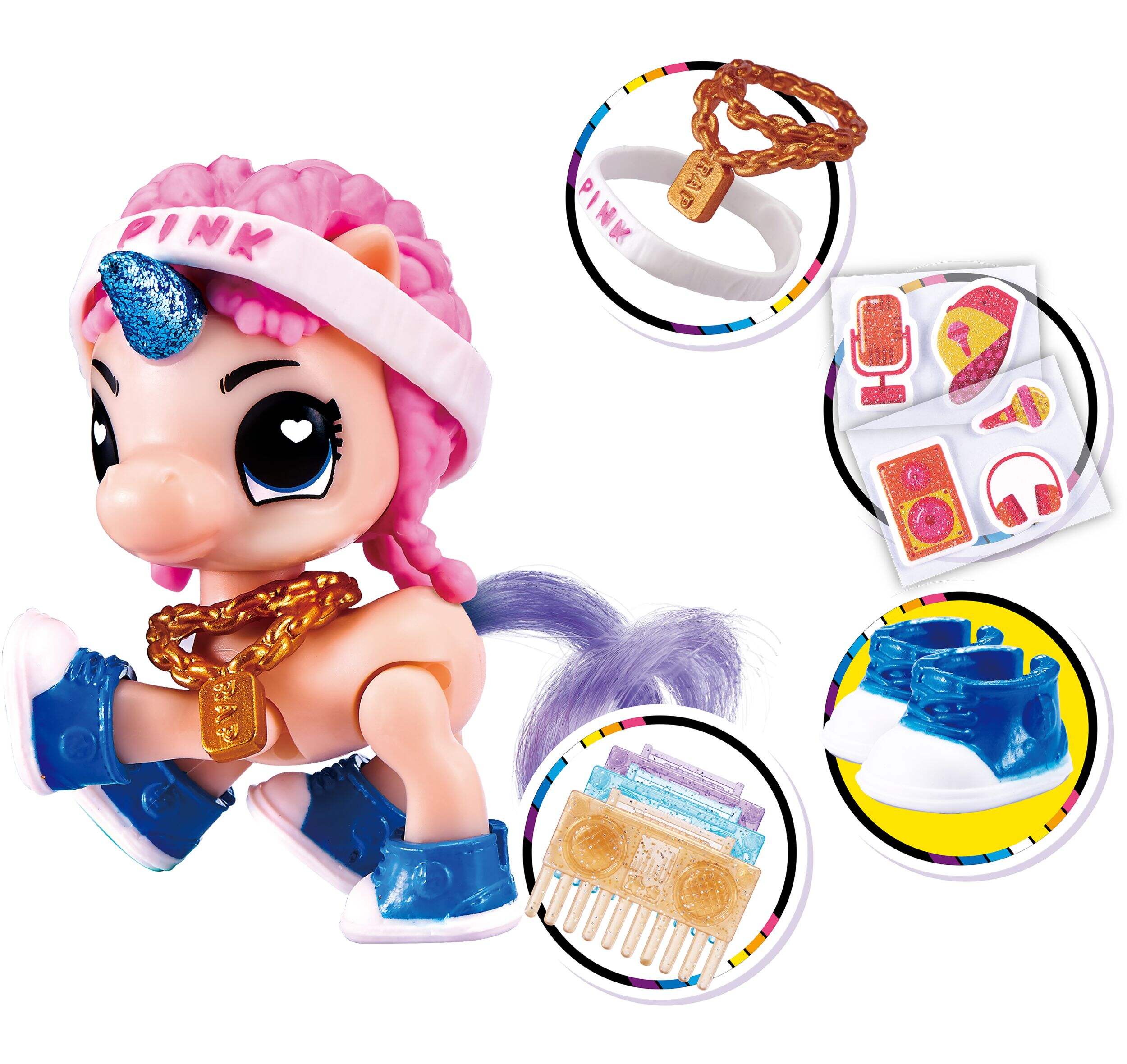 Unbox a magical unicorn surprise with 5 Surprise Unicorn Squad! Unwrap, peel and reveal each capsule to find a sassy member of the Unicorn Squad. Every unicorn comes with surprise accessories so you can style her and swap accessories with her squad! The surprises keep coming with stickers for you to decorate and a matching comb so you can groom your unicorns glossy tail and having her looking super cute! Every unicorn also comes with mystical magical Unicorn Poop compound for you to squish and stretch! Can you collect all 13 including the RARE GOLDEN UNICORN? They’re totally #unicornsquadgoals