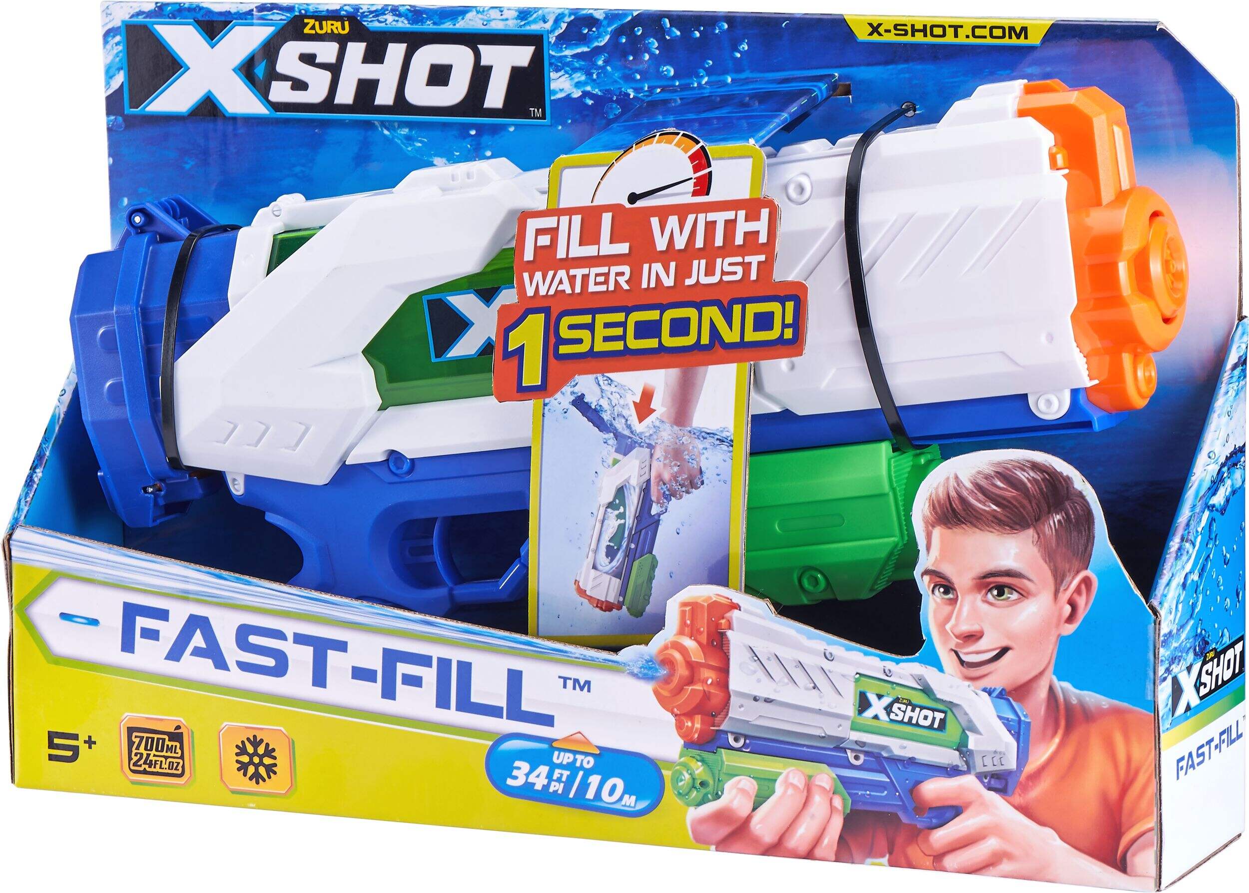 The X-Shot Fast-Fill is the fastest filling water blaster ever created. The Fast-Fill allows you to refill in two seconds and get back to the water blasting action long before your opponents. Just dunk, fill and close with rapid sealing technology.
