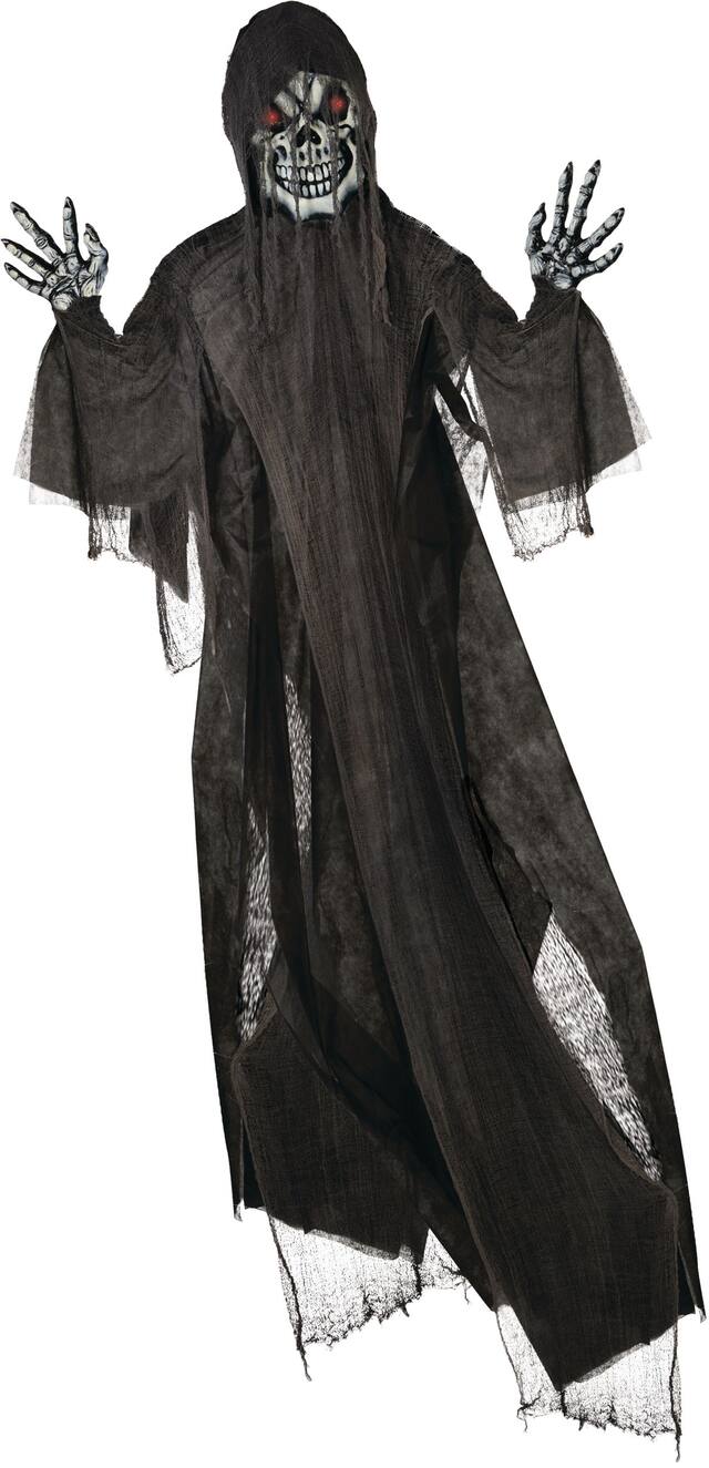 Ces produits similaires présentés ci-dessous pourraient vous intéresser.La mort guettera vos visiteurs le soir de l'Halloween lorsque vous décorerez votre maison avec la faucheuse géante lumineuse! La décoration en plastique d'une hauteur de 12 pi ressemble à une faucheuse au sourire menaçant portant une cape noire à capuchon. Activez ses yeux lumineux et portez ses bras vers des passants innocents pour un effet encore plus effrayant. Accrochez cette faucheuse géante lumineuse sur votre porche pour compléter le reste de vos décorations d'Halloween!