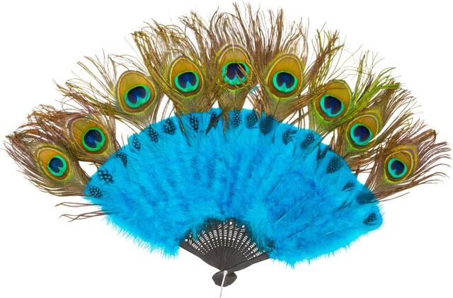 Joli accessoire à plumes pouvant être utilisé comme éventail orné ou fixé à l'arrière de votre costume pour avoir l'air d'un paon se pavanant