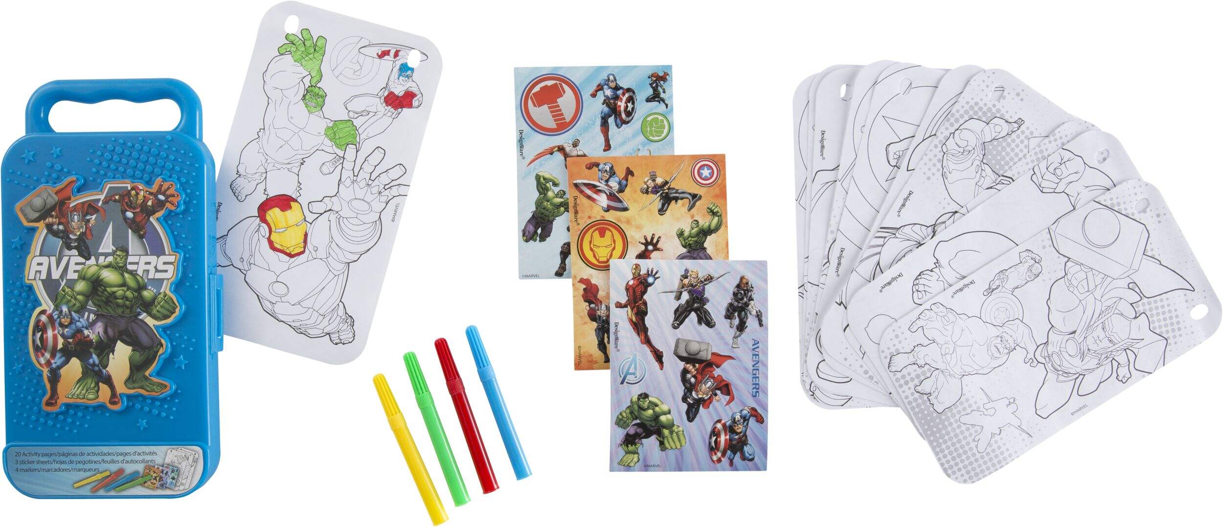 Comprend : 20 pages d'activités de 3 3/4 po la x 6 3/4 po H, 3 feuilles d'autocollants de 3 1/4 po la x 4 1/4 po H, 4 marqueurs de 3 po L et 1 boîte de 4 po la x 8 po H x 3/4 po P